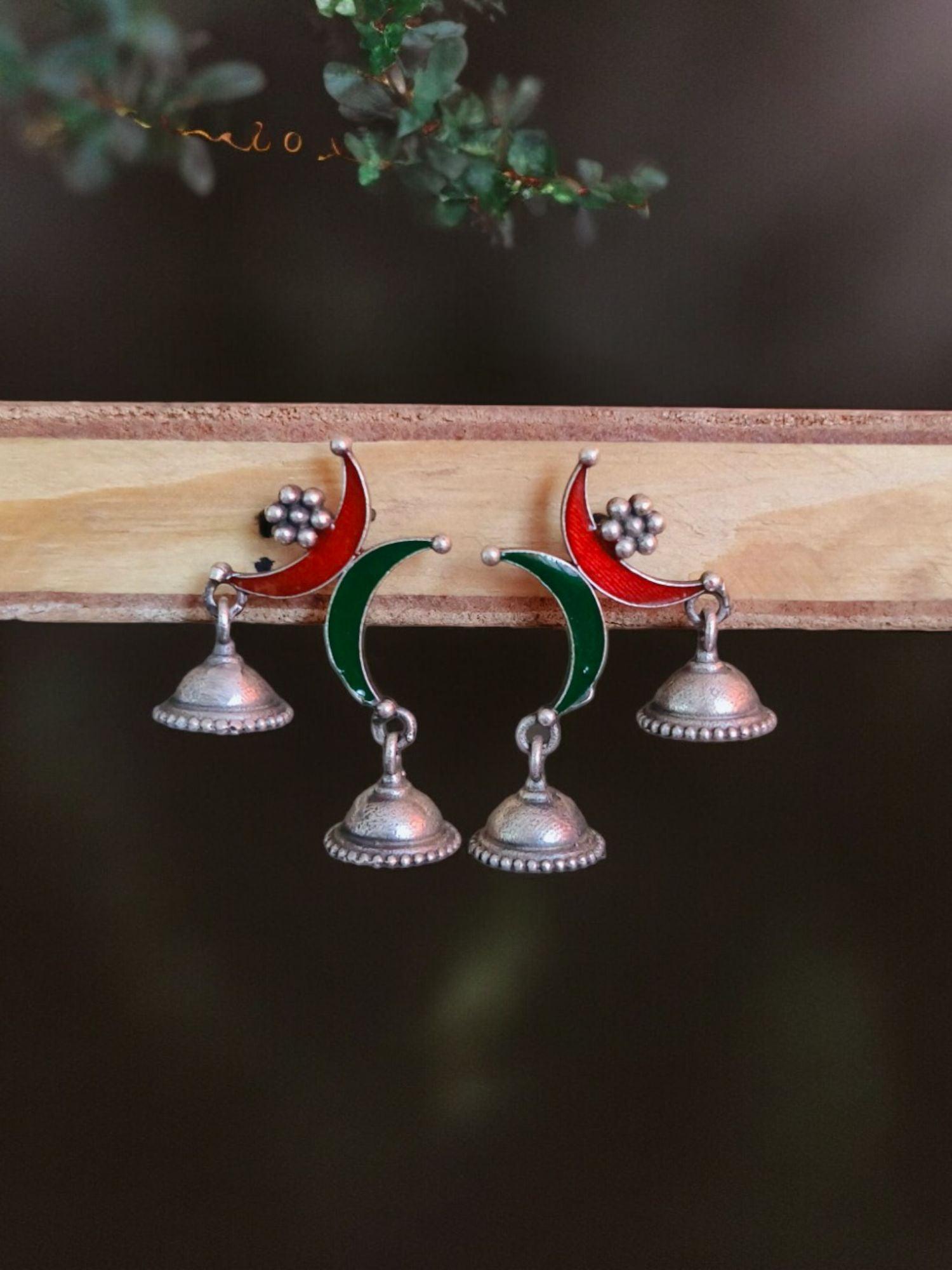 2 Half Moon Enamel Jhumka Earrings | Sarichka