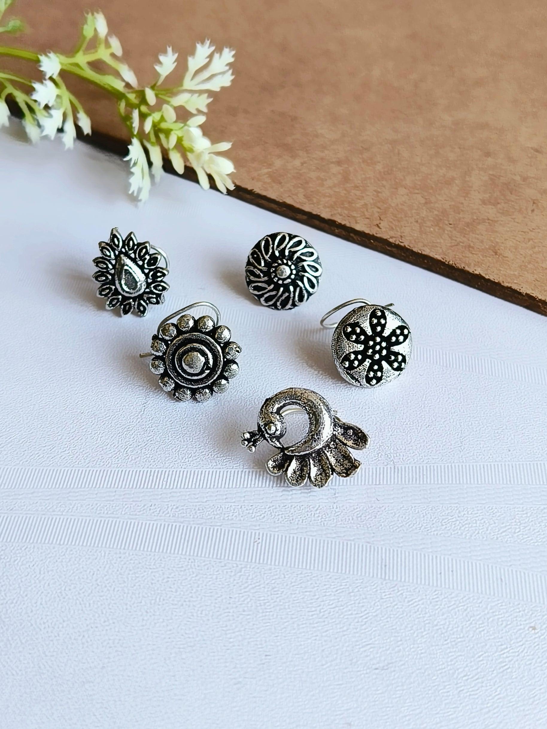 The collection includes a range of Oxidized Nose pins designed to meet the needs of diverse styles and tastes. From delicate floral designs to geometric and minimalist shapes Each design has been meticulously created to complement the beauty of your face and reflect your style. Their versatility can be used for everyday wearing, formal occasions, or as a stand-out item for celebrations.