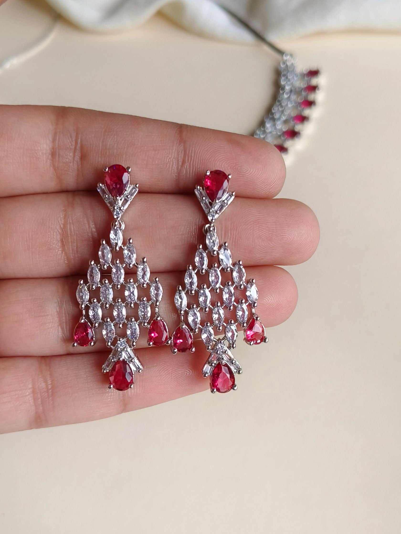 Beautifully crafted necklace made with high-quality brass, premium polish, and high-finish plating. Studded with shiny American Diamonds for a rich, elegant sparkle that enhances any festive look.