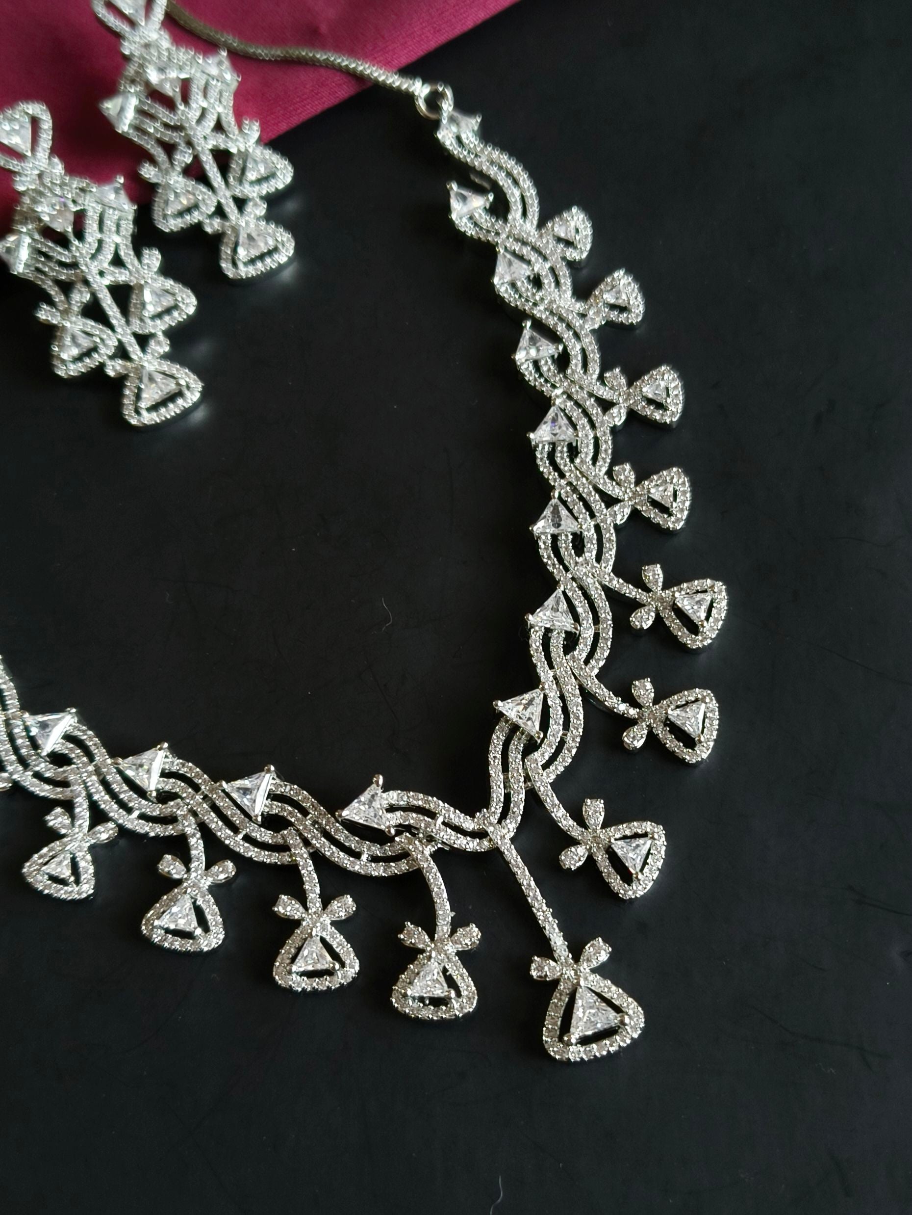 Beautifully crafted necklace made with high-quality brass, premium polish, and high-finish plating. Studded with shiny American Diamonds for a rich, elegant sparkle that enhances any festive look.