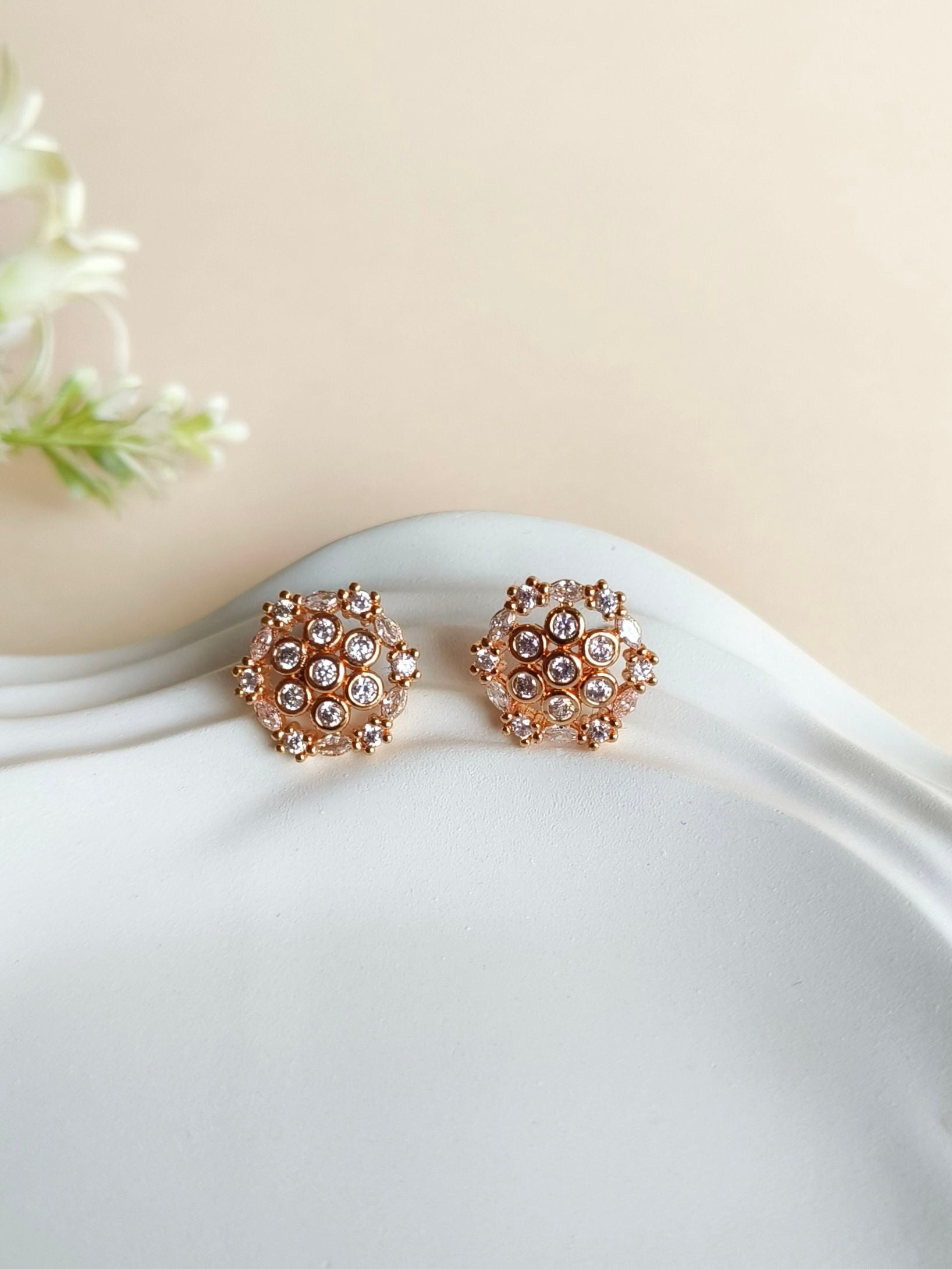 Beautifully crafted earrings made with high-quality brass, premium polish, and high-finish plating. Studded with shiny American Diamonds for an elegant sparkle and comfortable wear.