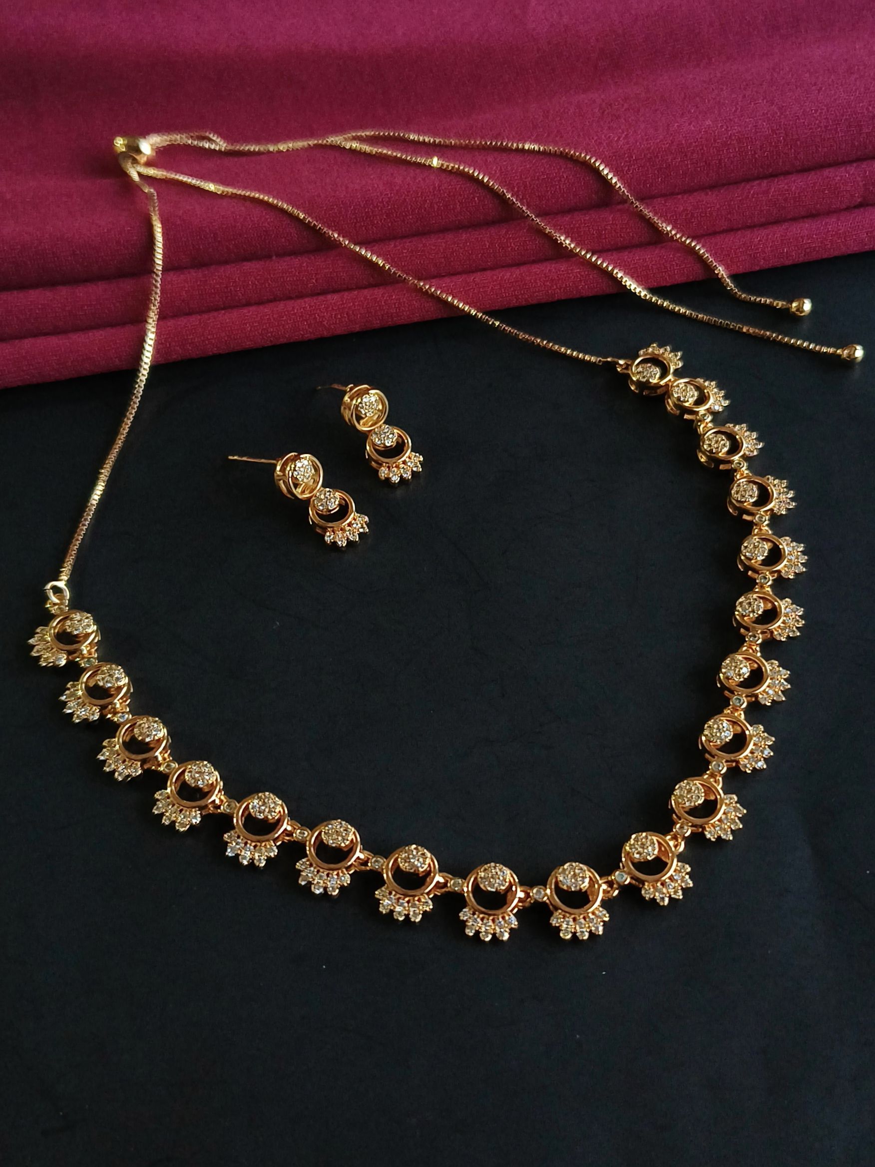 Beautifully crafted necklace made with high-quality brass, premium polish, and high-finish plating. Studded with shiny American Diamonds for a rich, elegant sparkle that enhances any festive look.