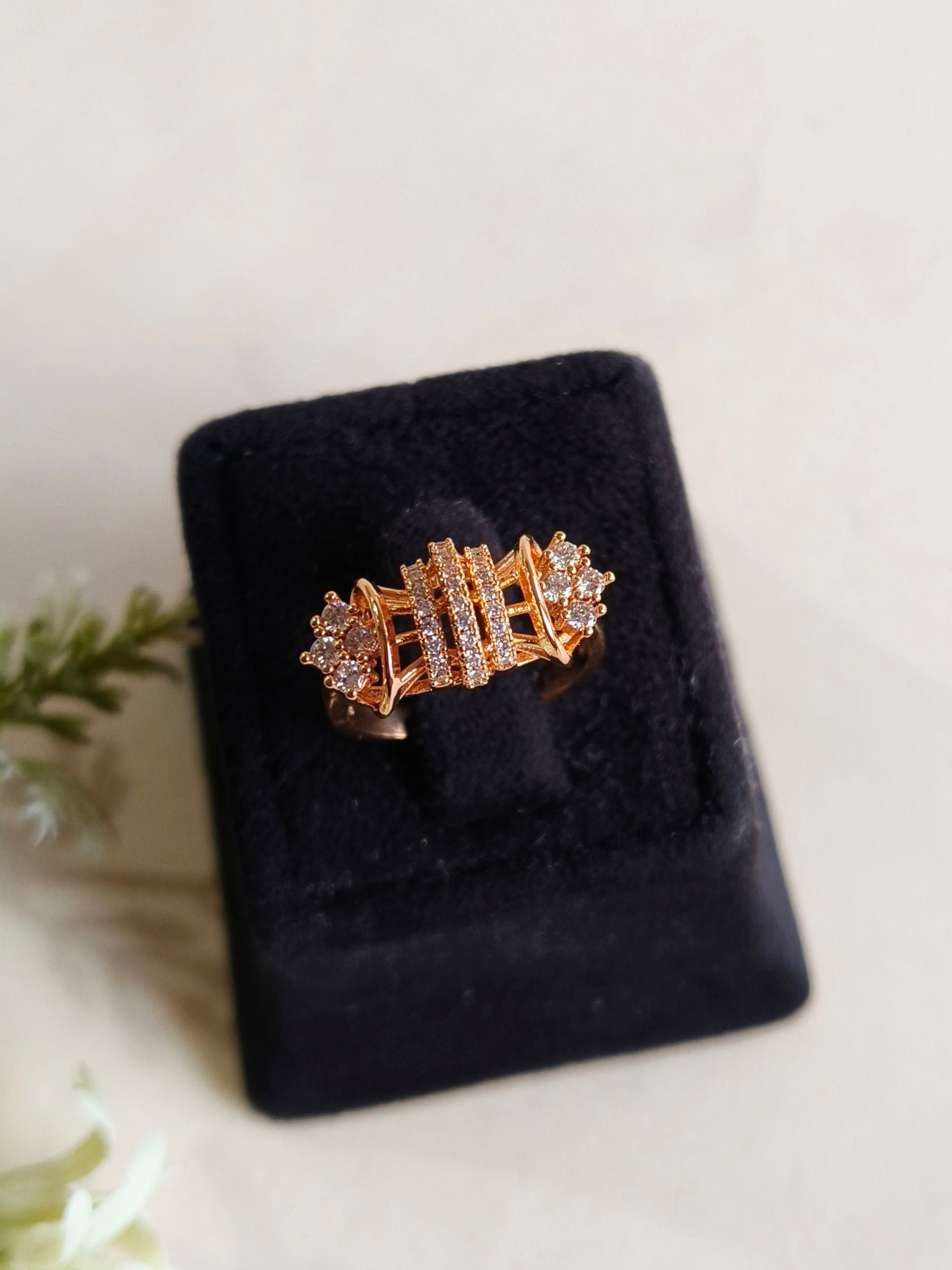 Beautifully crafted adjustable finger ring made with high-quality brass, premium polish, and high-finish plating. Studded with shiny American Diamonds for an elegant sparkle. The adjustable design comfortably fits most finger sizes.