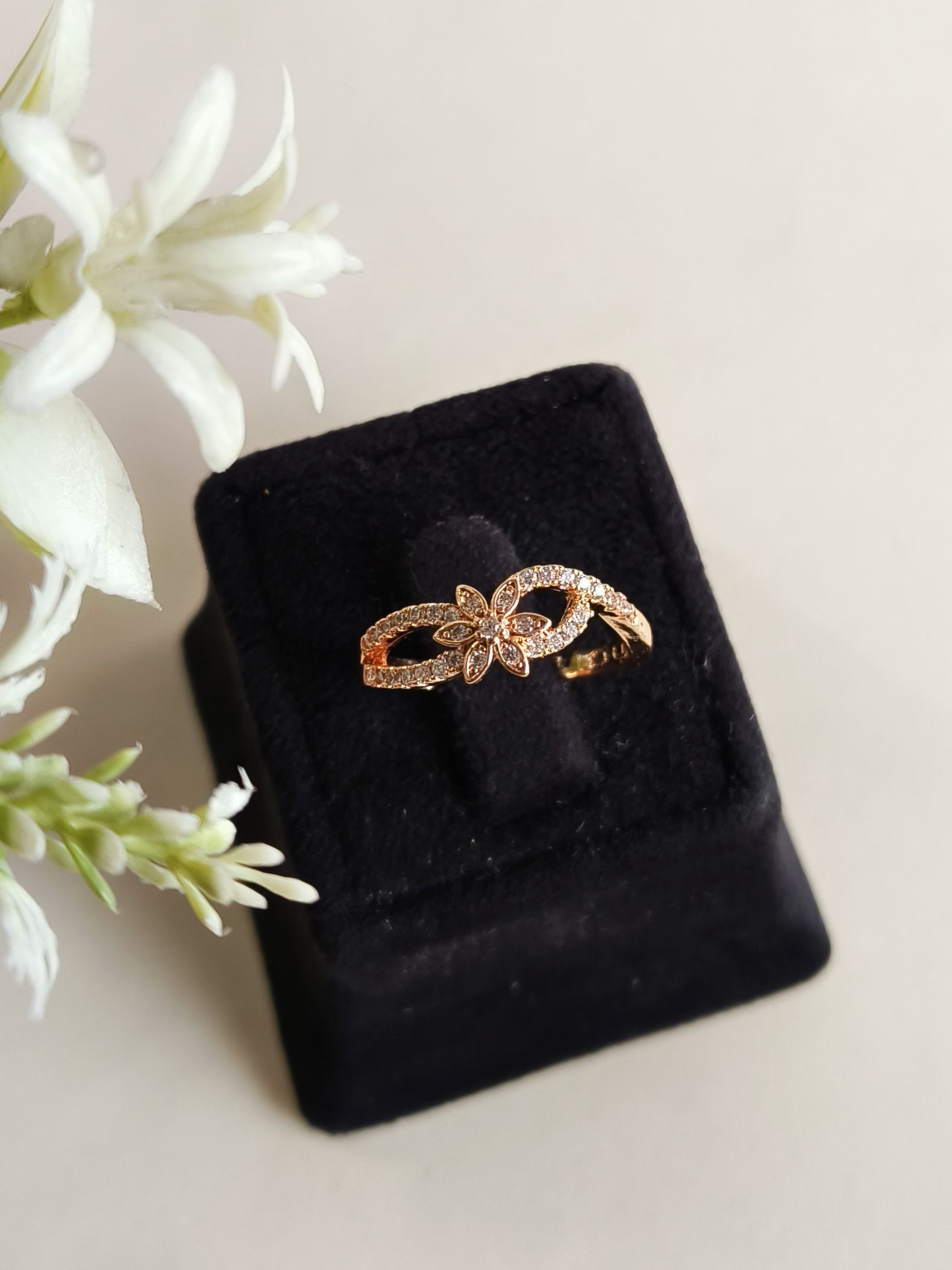 Beautifully crafted adjustable finger ring made with high-quality brass, premium polish, and high-finish plating. Studded with shiny American Diamonds for an elegant sparkle. The adjustable design comfortably fits most finger sizes.