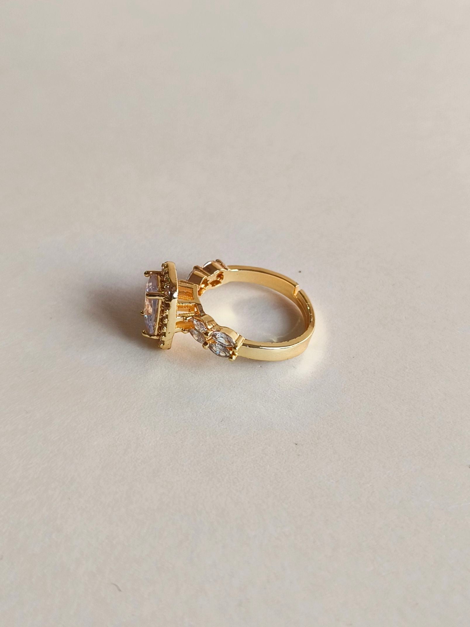 Beautifully crafted adjustable finger ring made with high-quality brass, premium polish, and high-finish plating. Studded with shiny American Diamonds for an elegant sparkle. The adjustable design comfortably fits most finger sizes.