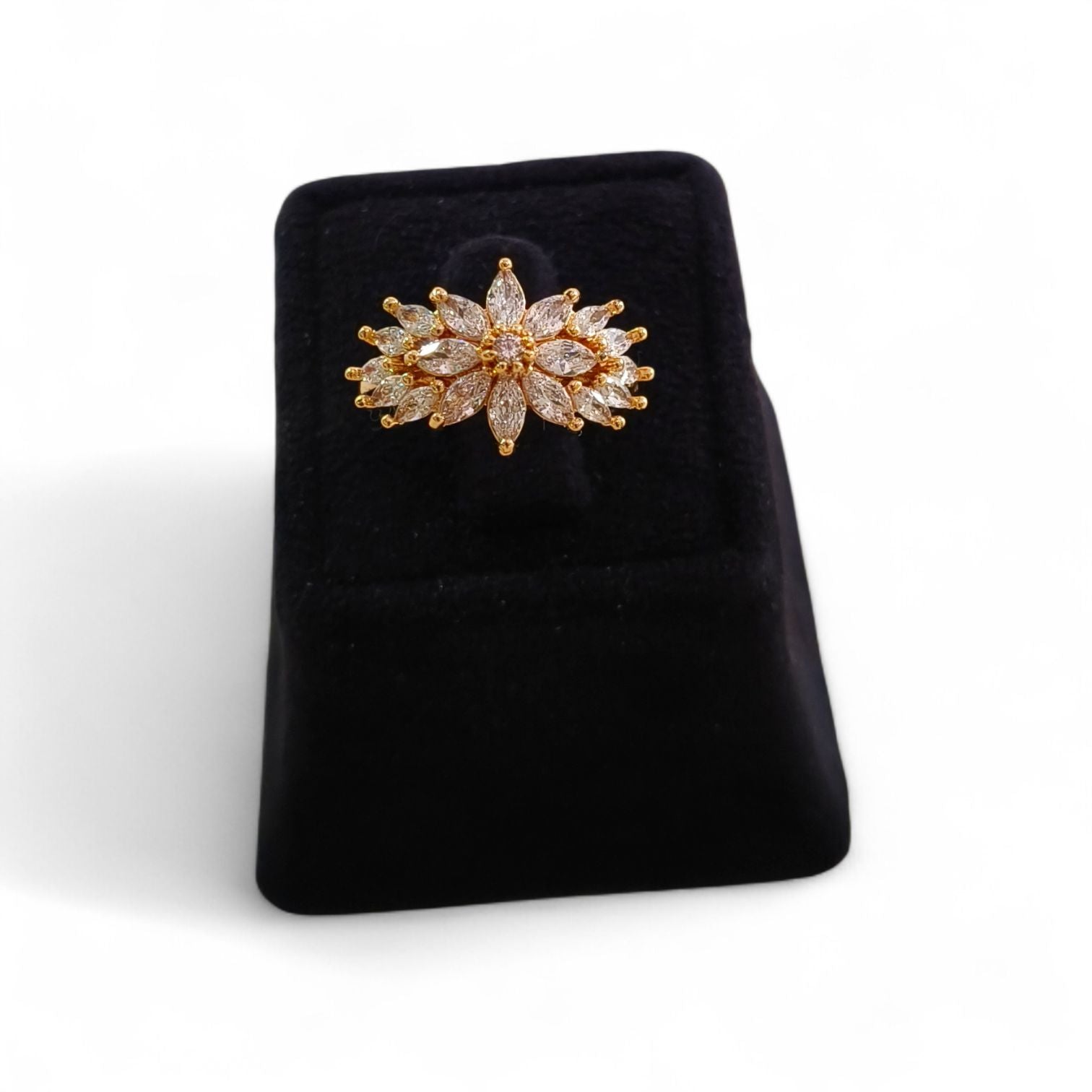 Beautifully crafted adjustable finger ring made with high-quality brass, premium polish, and high-finish plating. Studded with shiny American Diamonds for an elegant sparkle. The adjustable design comfortably fits most finger sizes.