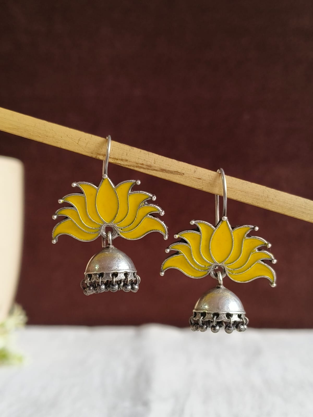 Give a hint of sophistication in your jewelry collection with your collection of Lotus oxidized Jhumka Earrings The pair is both elegant and beautiful.