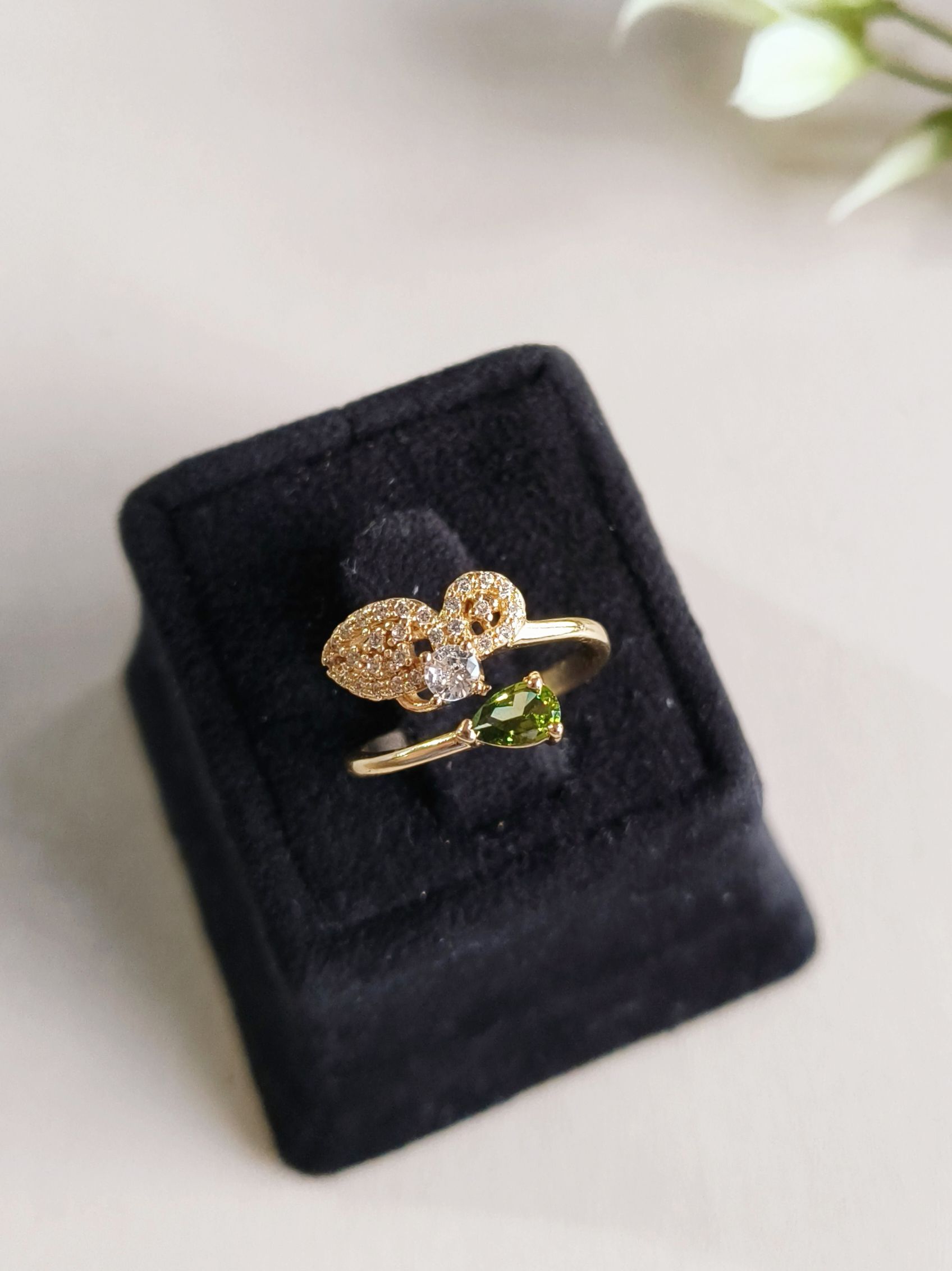 Beautifully crafted adjustable finger ring made with high-quality brass, premium polish, and high-finish plating. Studded with shiny American Diamonds for an elegant sparkle. The adjustable design comfortably fits most finger sizes.