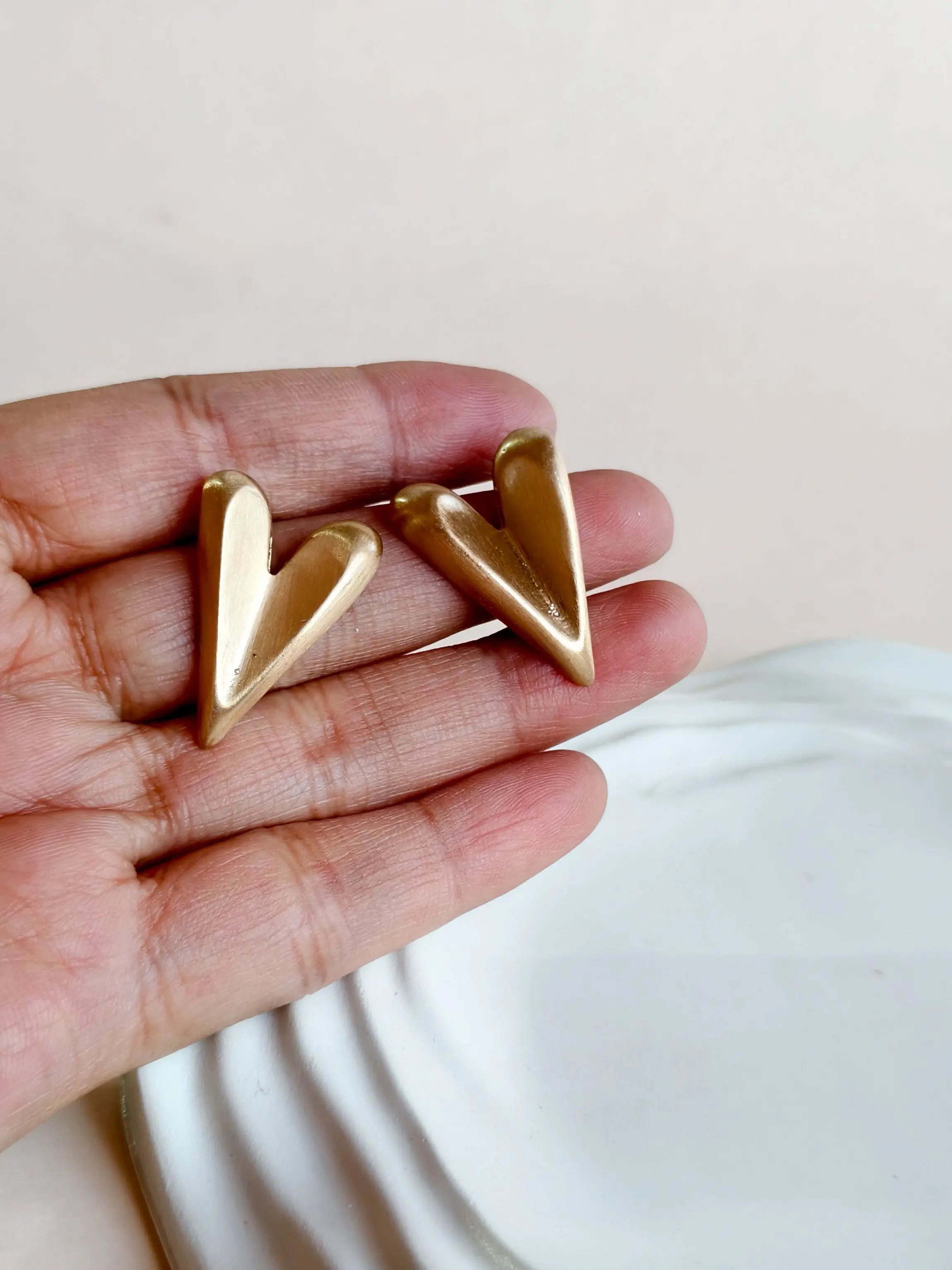Design Elements: Classic heart-shaped stud design with a smooth golden finish, symbolizing elegance and love.