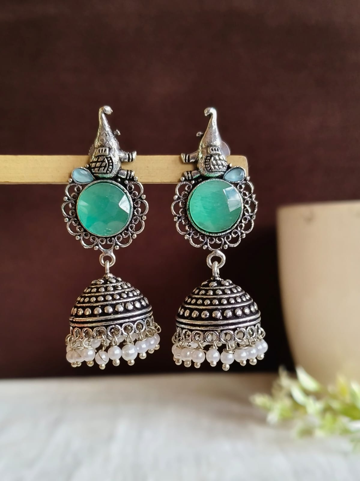 The Antique look Oxidised Pearl Earrings are a striking mix of old-fashioned design and contemporary craftsmanship. Ideal for adding a bit of class to your outfit or for finding the perfect present, the earrings are guaranteed to delight. Keep us in mind on Instagram @sarichka.fashion to find more gorgeous jewelry and design inspiration.