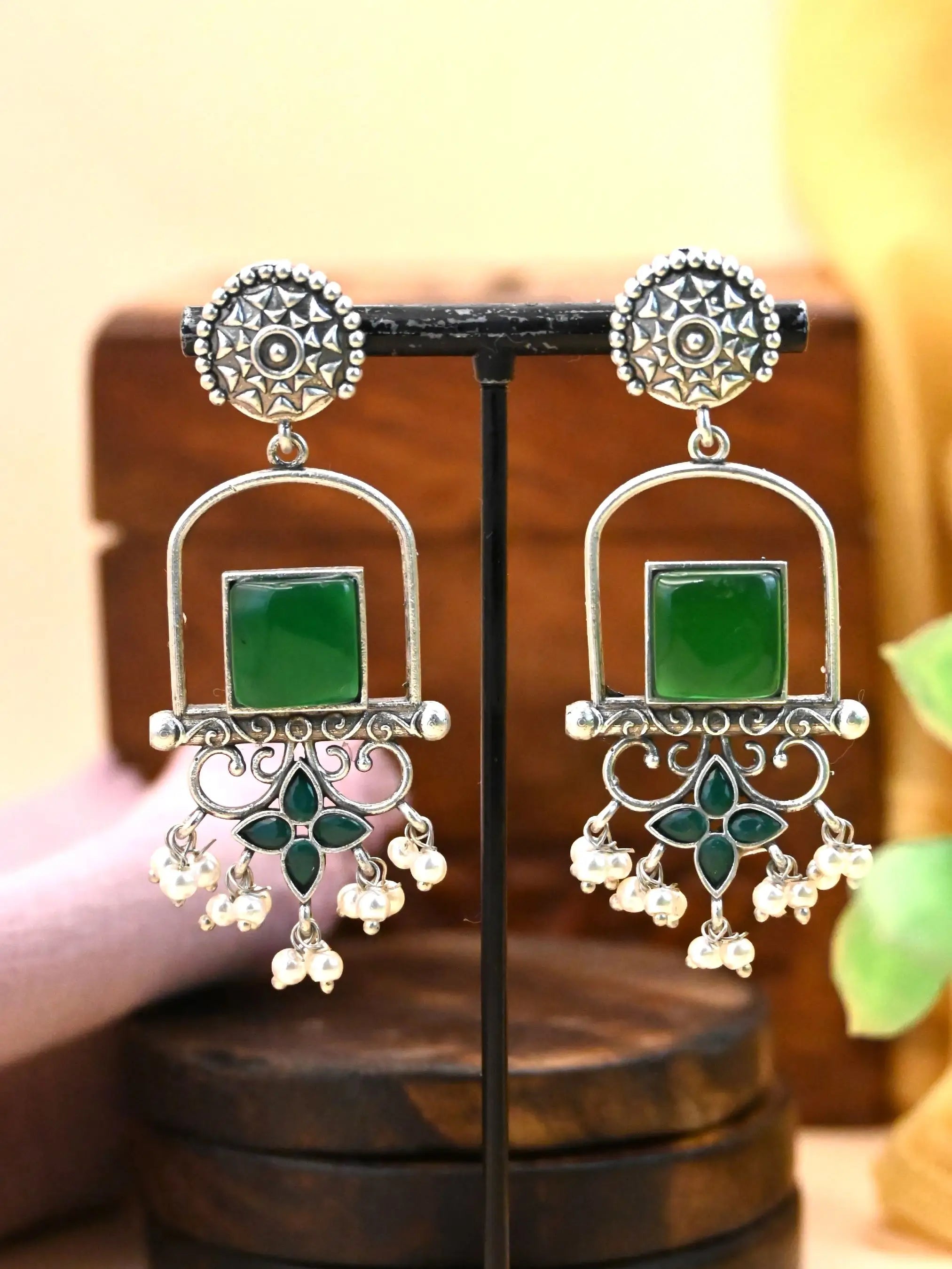 Elevate your accessory game with these antique silver-look dangler earrings from Sarichka, blending vintage charm with modern elegance. These earrings are the perfect choice for any occasion, offering a timeless appeal.