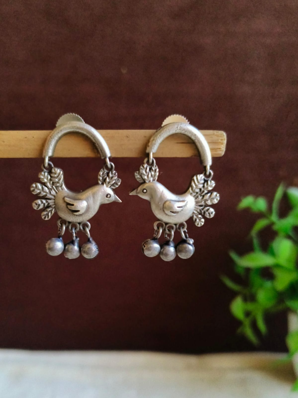 Add a whimsical charm to your look with these Silver Look-Alike Sparrow Dangler Earrings from Sarichka Fashion. Perfect for everyday elegance, they combine nature-inspired design with stylish minimalism.