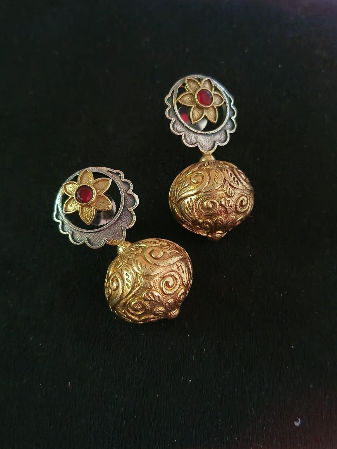 Enhance your jewellery collection by adding the stunning Brass Ball Dangler Earrings that are Oxidized. They're timeless and stylish style are sure to elevate every outfit with a hint of timeless charm and contemporary elegance. Get them now and include the stunning earrings in your collection, and feel an encapsulation of fashion and quality. Follow Us on Instagram for more: @Sarichka.fashion