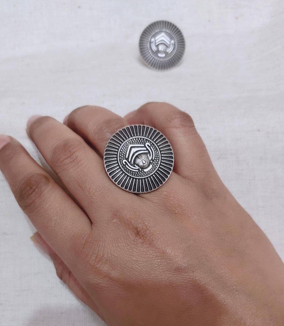 Elevate your spiritual style with the Divine Mata Ji Oxidised Adjustable Finger Ring from Sarichka Fashion. Crafted in premium-quality metal with a rustic oxidised silver finish, this ring features a sacred Mata Ji motif, beautifully engraved to reflect divine energy and grace. The open adjustable band ensures a universal fit and all-day comfort. Ideal for festive wear, Navratri celebrations, temple visits, and traditional gatherings. It’s also a meaningful gift for devotees or spiritual souls.