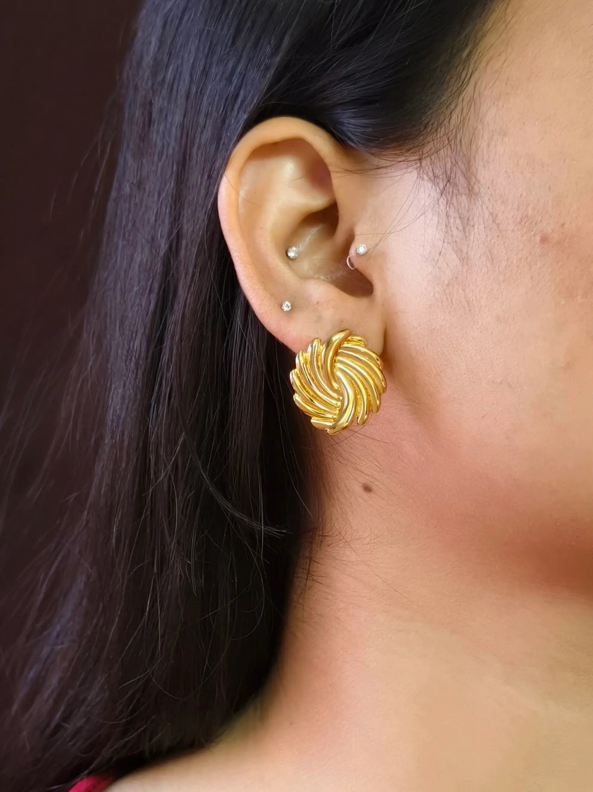 Add timeless elegance to your look with these Golden Polish Stainless Steel Stud Earrings from Sarichka. Designed with a sleek, minimal silhouette, these studs bring a modern charm suitable for daily wear, office looks, and casual outings. Lightweight and durable, they offer all-day comfort. A perfect gift option for birthdays, anniversaries, or special occasions. Pair them effortlessly with western, fusion, or smart-casual outfits to elevate your style.