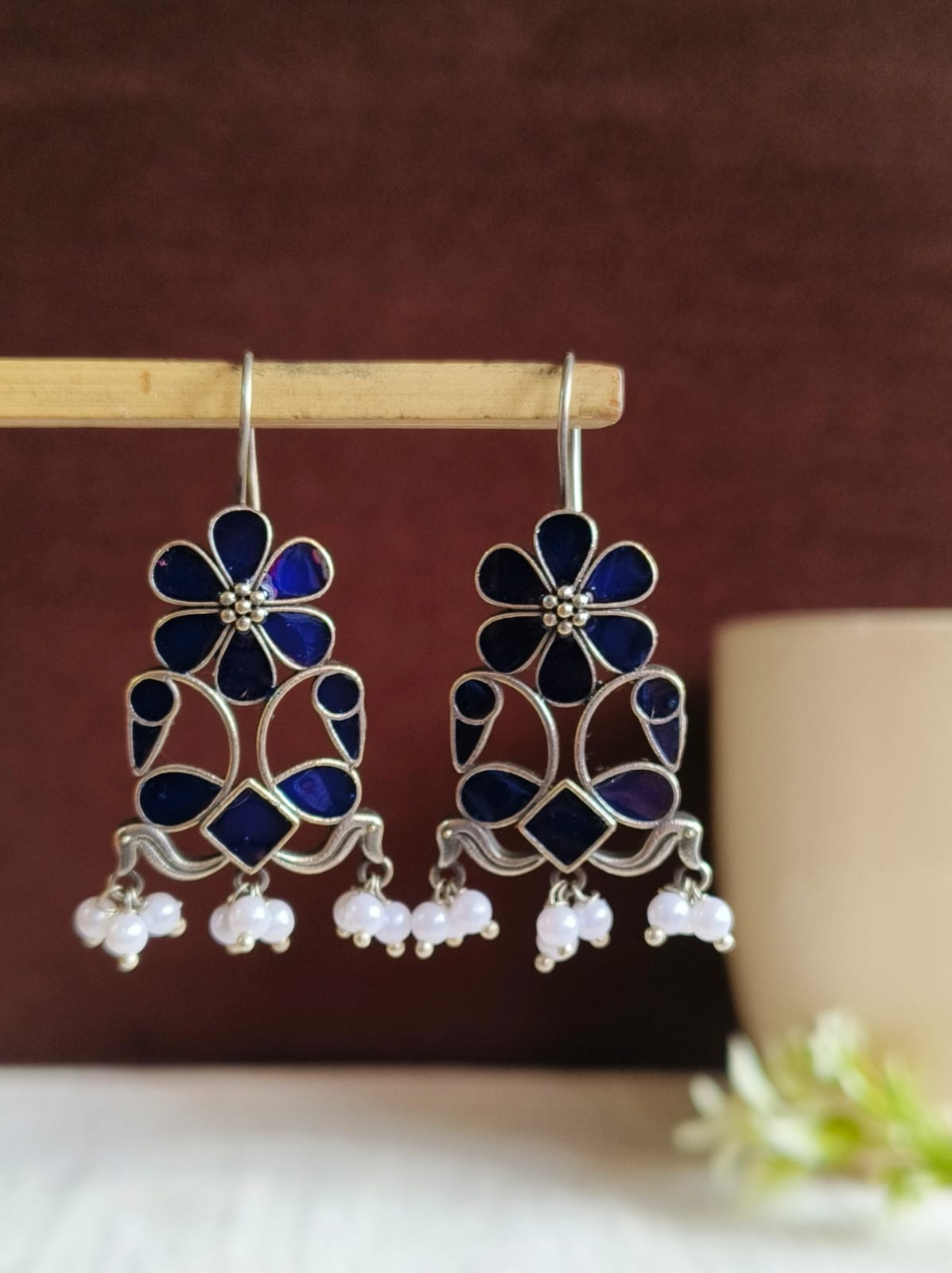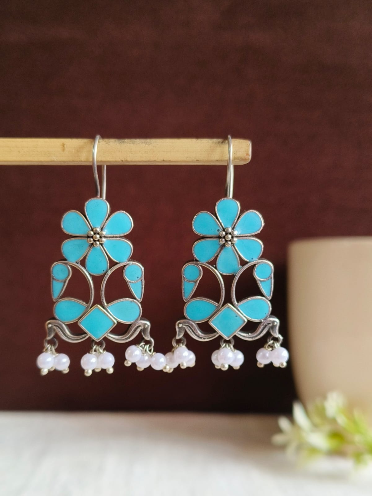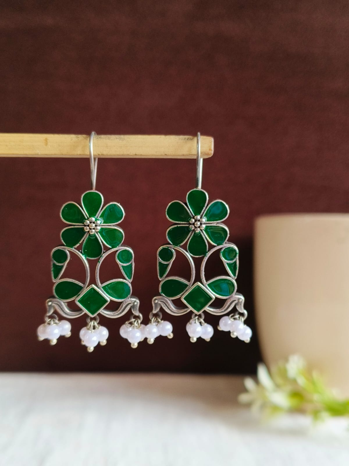 Constructed of durable brass and covered with top-quality silver plating These Floral Hook Earrings Silver are made to be stunning and durable. Oxidation adds an unique antique look to the silver, which gives the earrings an attractive style. The design of the hook guarantees a snug comfort and a comfortable fit they are perfect for day-to-day wear.