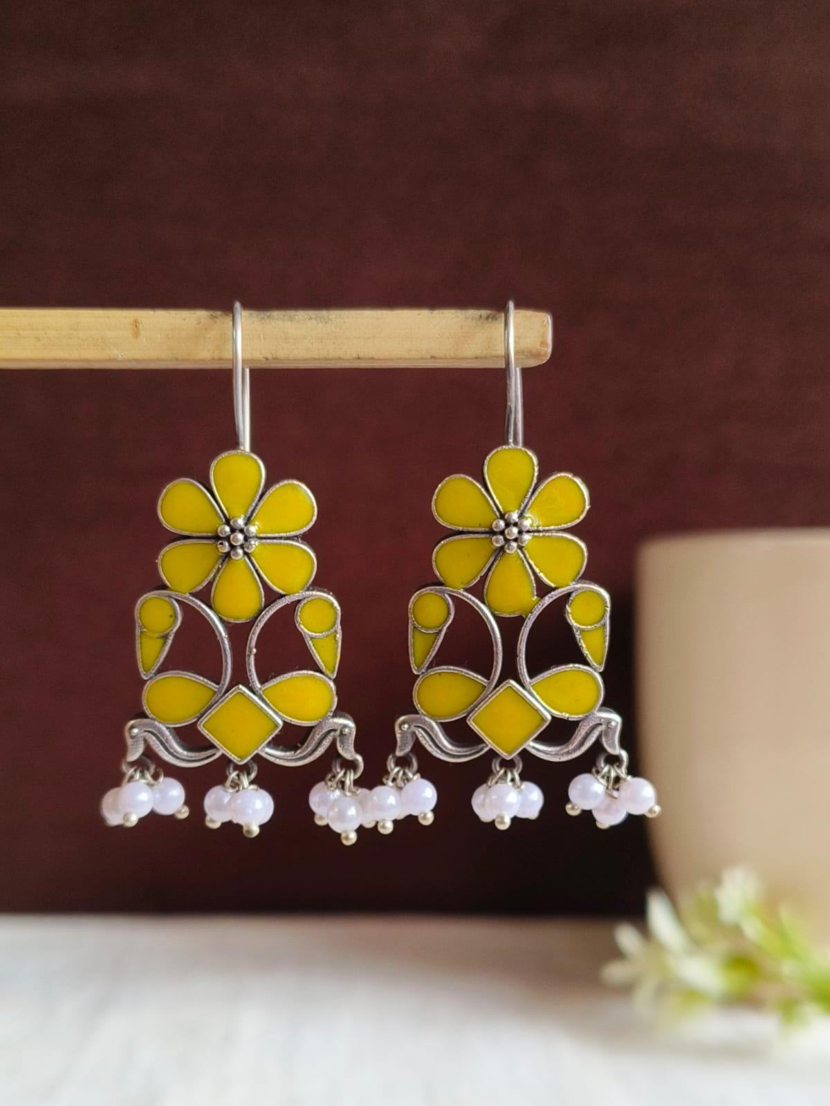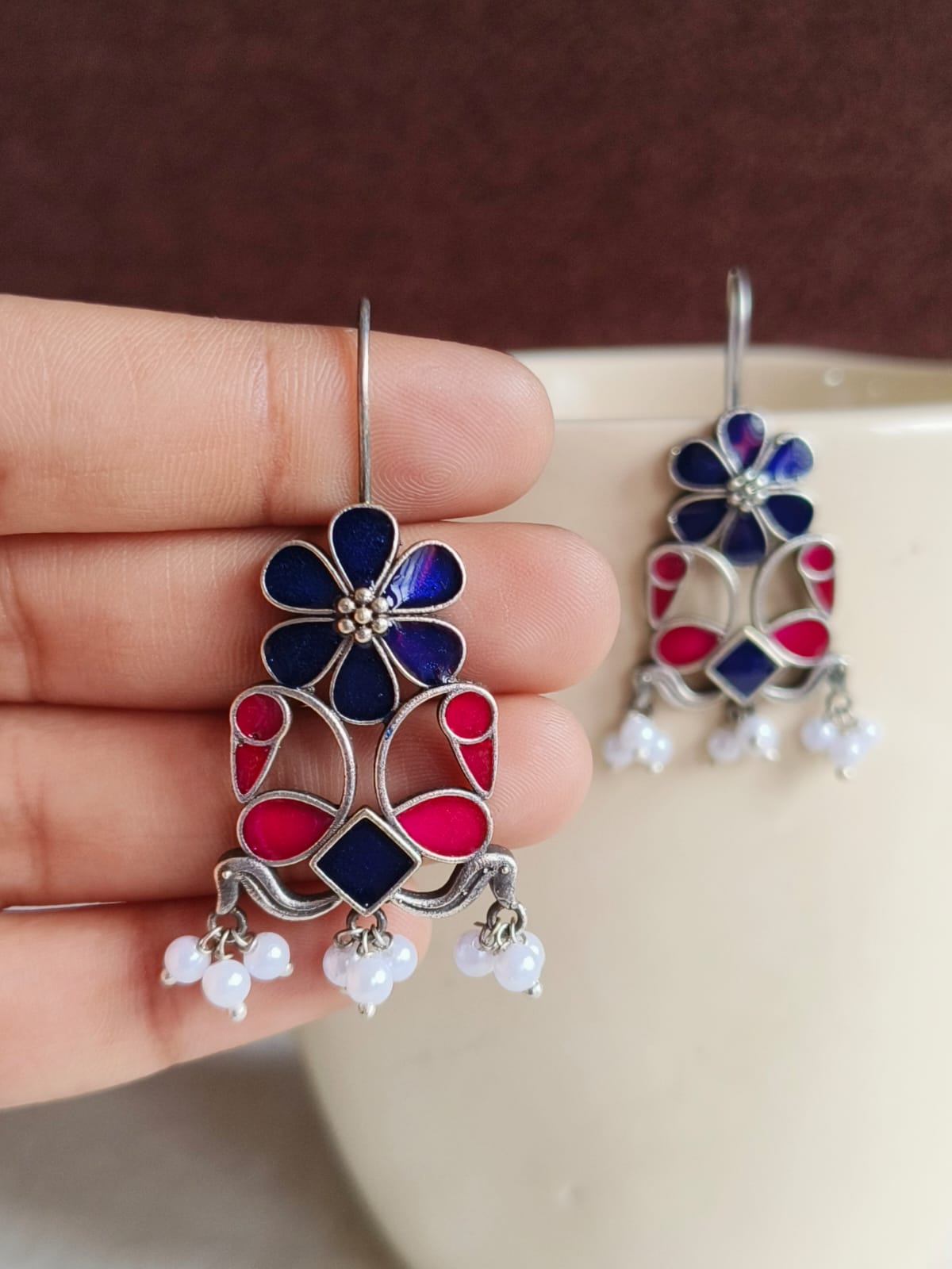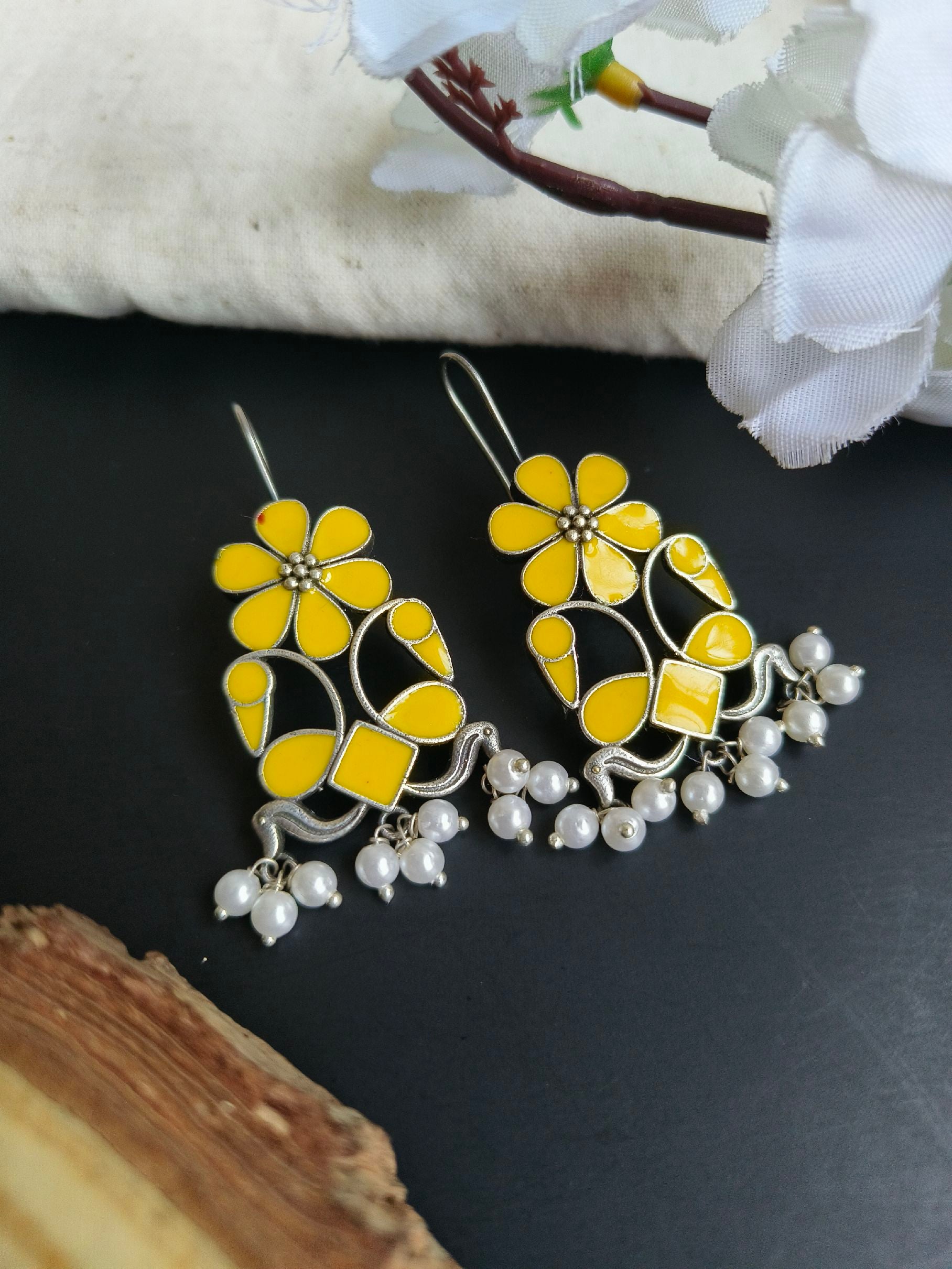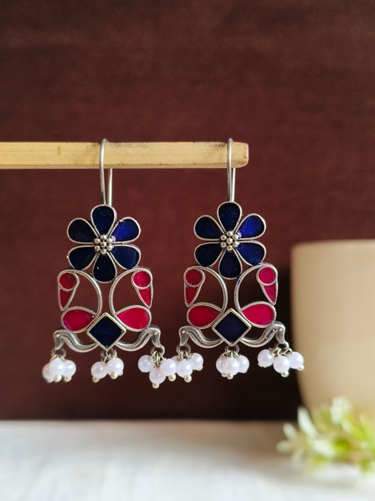 Constructed of durable brass and covered with top-quality silver plating These Floral Hook Earrings Silver are made to be stunning and durable. Oxidation adds an unique antique look to the silver, which gives the earrings an attractive style. The design of the hook guarantees a snug comfort and a comfortable fit they are perfect for day-to-day wear.