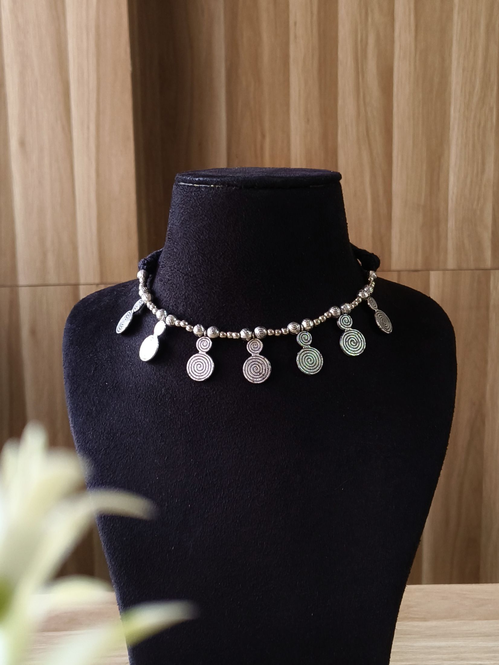 Embrace bold bohemian elegance with this traditional German silver gypsy-style choker necklace, designed to reflect free-spirited charm and ethnic craftsmanship.