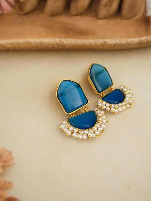 Gold Plated Earring with Monalisa Stone and Pearl | Sarichka