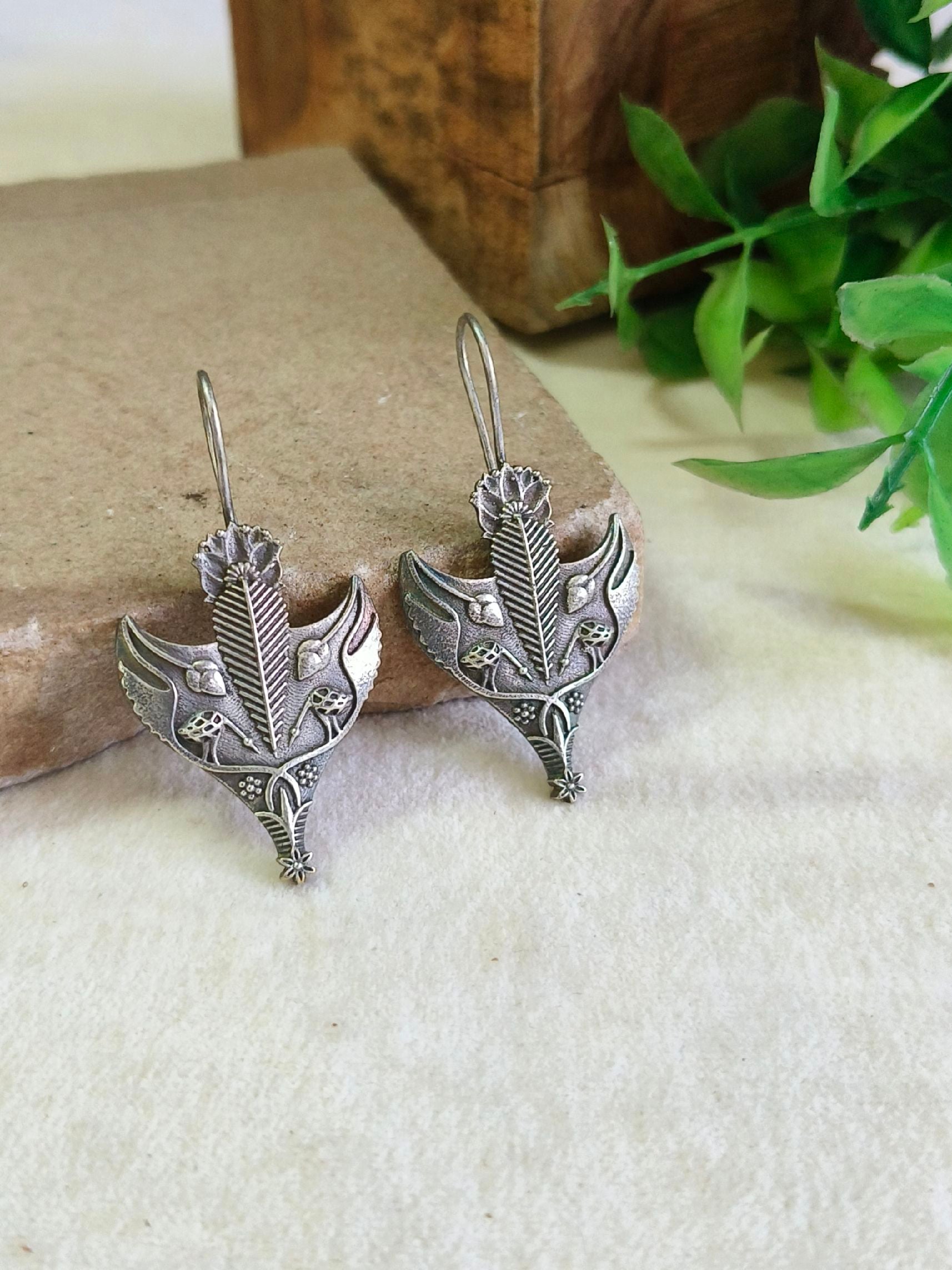Silver Oxidised Tribal Hook Earrings for Women