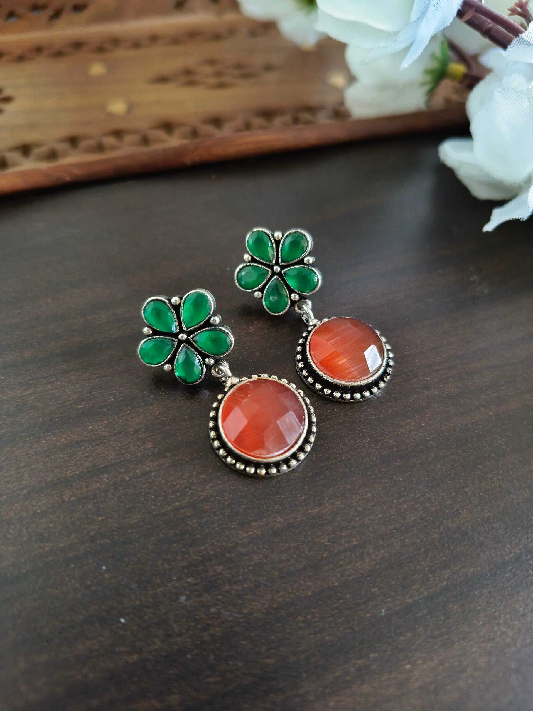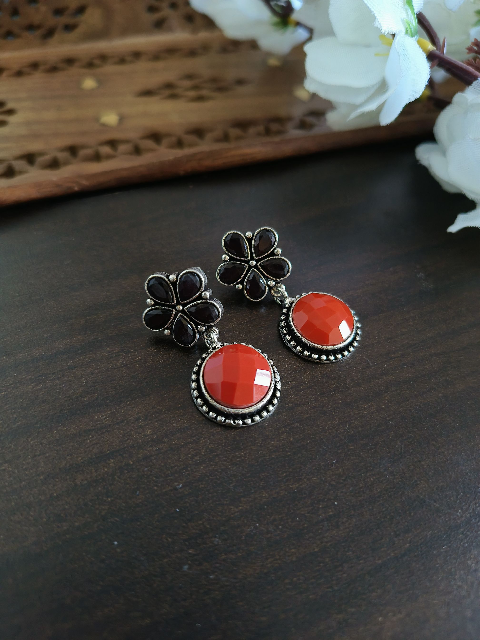 No matter if you're dressed for an event or want to add slight sparkle to your everyday outfit These Heritage Flora Oxidised Earrings can match any attire. The mix of brass and silver plating guarantees durability and the light-weight design provides the comfort you need throughout the day.