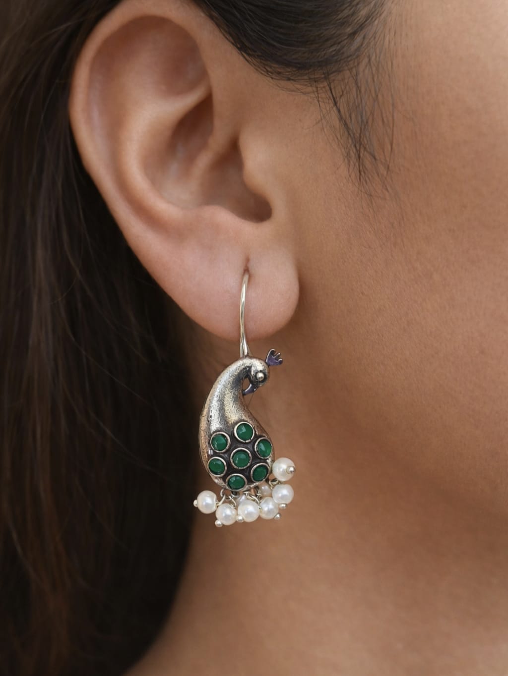 These oxidised German silver Keri hook earrings are a perfect blend of vintage charm and traditional design. Featuring an elegant Keri (mango) motif, they add a unique touch to any ethnic or festive attire. The oxidised finish enhances the intricate details, making these earrings stand out with timeless elegance. Whether for a wedding, cultural event, or casual traditional wear, they bring sophistication to any occasion. These earrings also make a thoughtful gift for someone who loves subtle yet striking pieces. Pair them with sarees, lehengas, or fusion styles for a refined look.