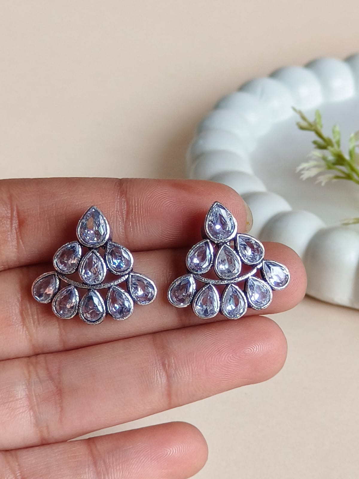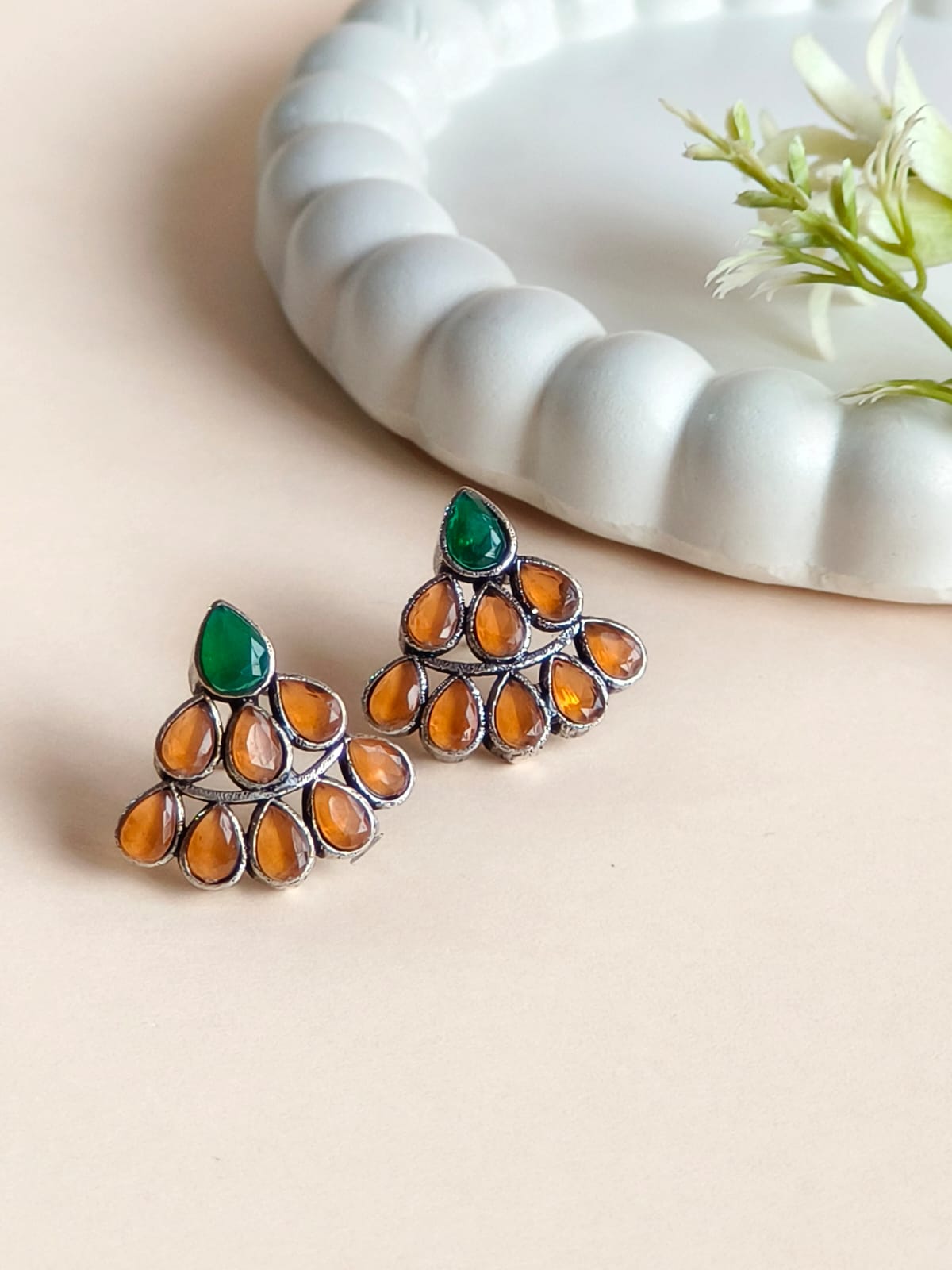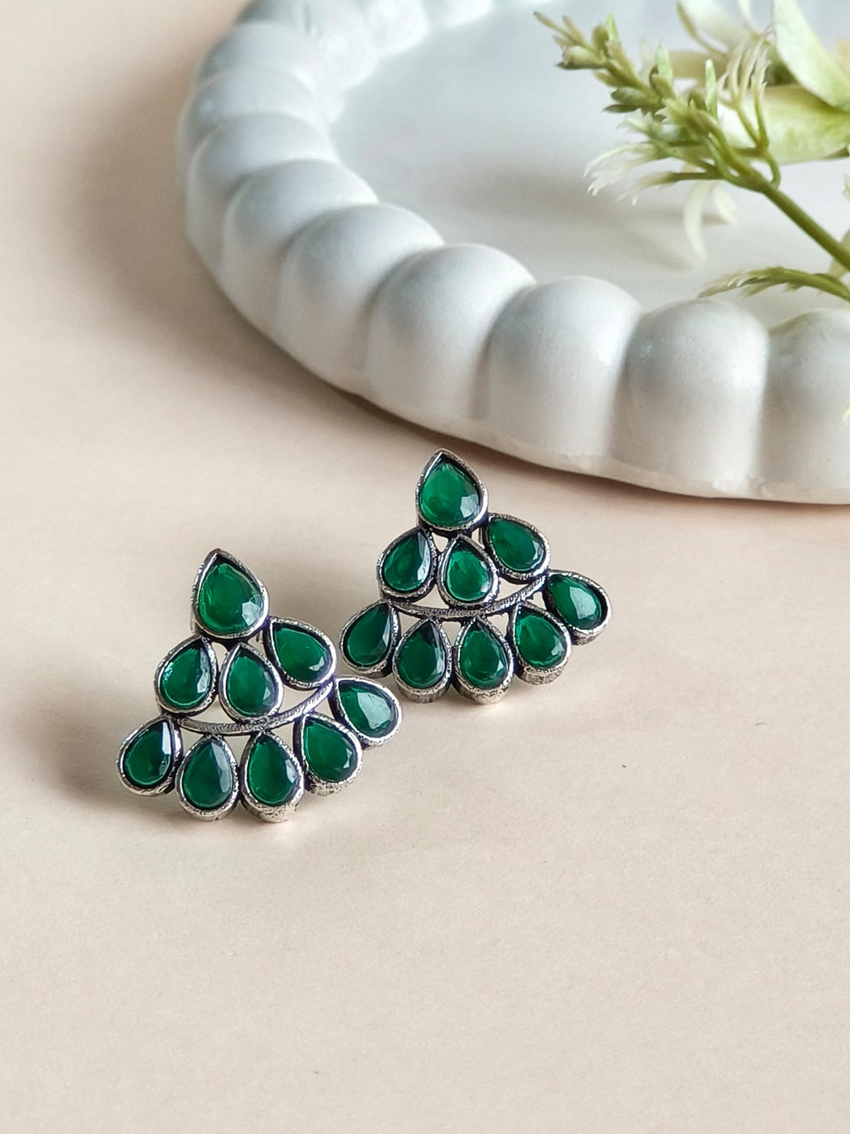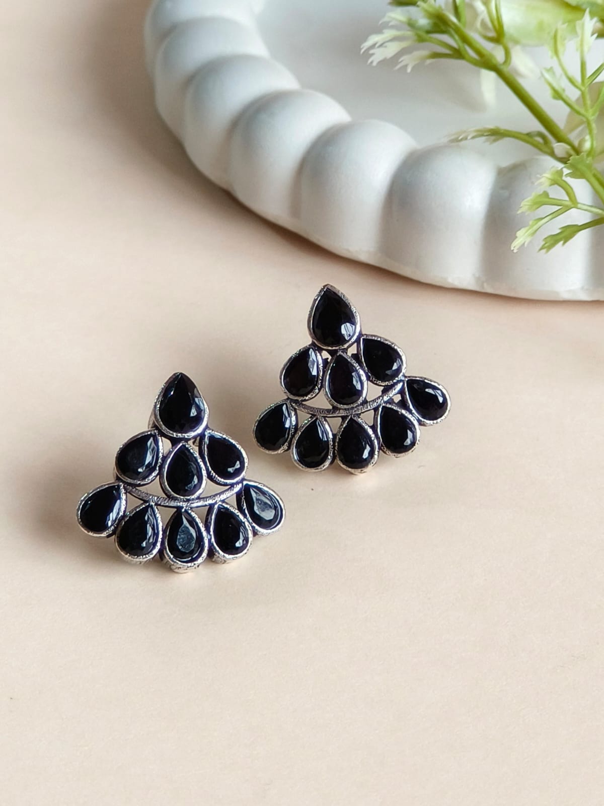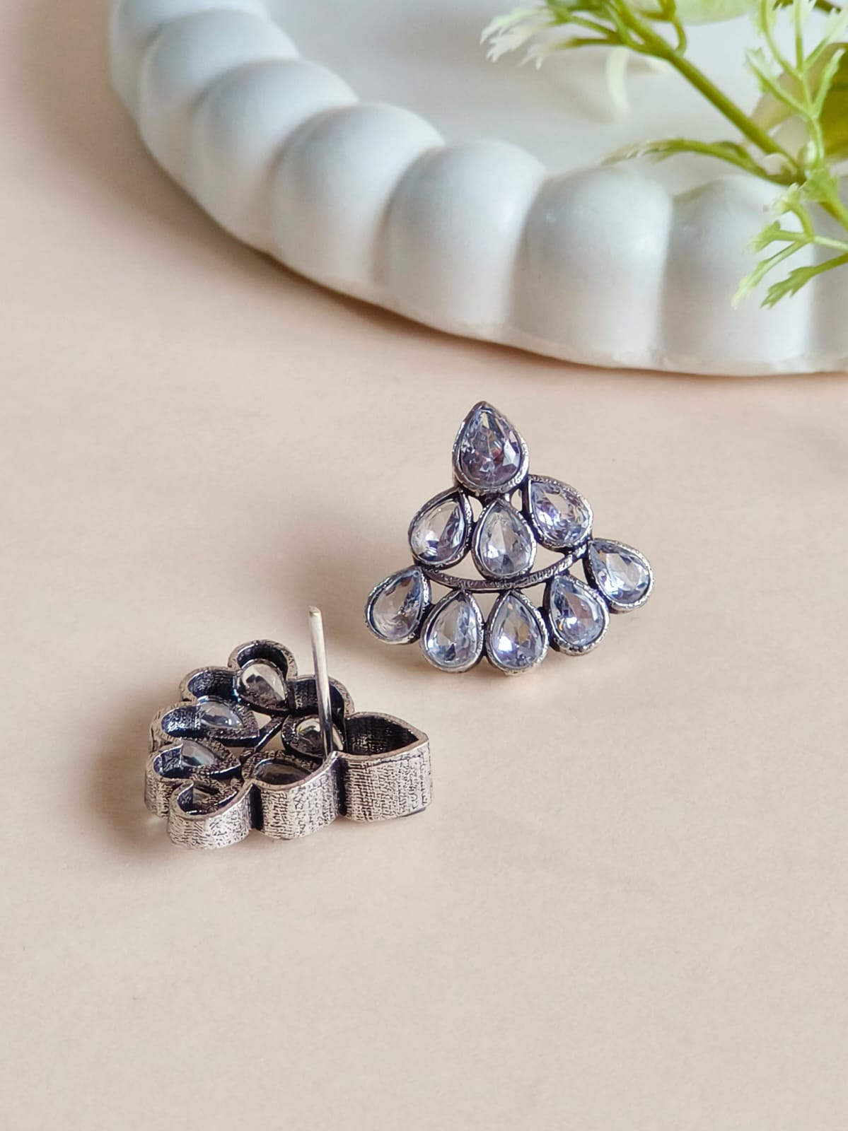 Give a hint of sophistication to your outfit with these gorgeous Oxidized Stone Studs. They are made of high-quality brass, and coated with silver of the highest quality These studs offer the perfect mix of modern designs and classic craftmanship. Their oxidized surface creates an old-fashioned look which makes them a great accessory that can be worn for every event.