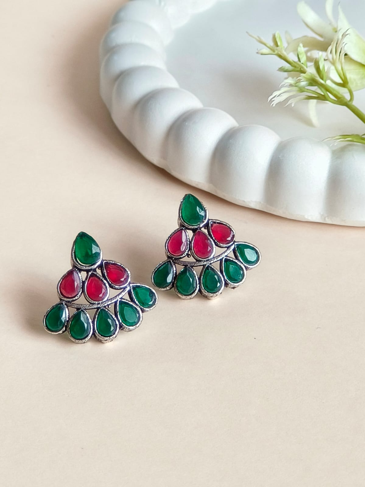 The Oxidized Stone Studs are made of durable brass that guarantees longevity of wear. The silver plating provides an elegant shine. the stones carefully chosen provide an amazing contrast to the dark background. Each stud is carefully created to provide the best of both worlds which makes them an indispensable accessory to your collection of jewelry.