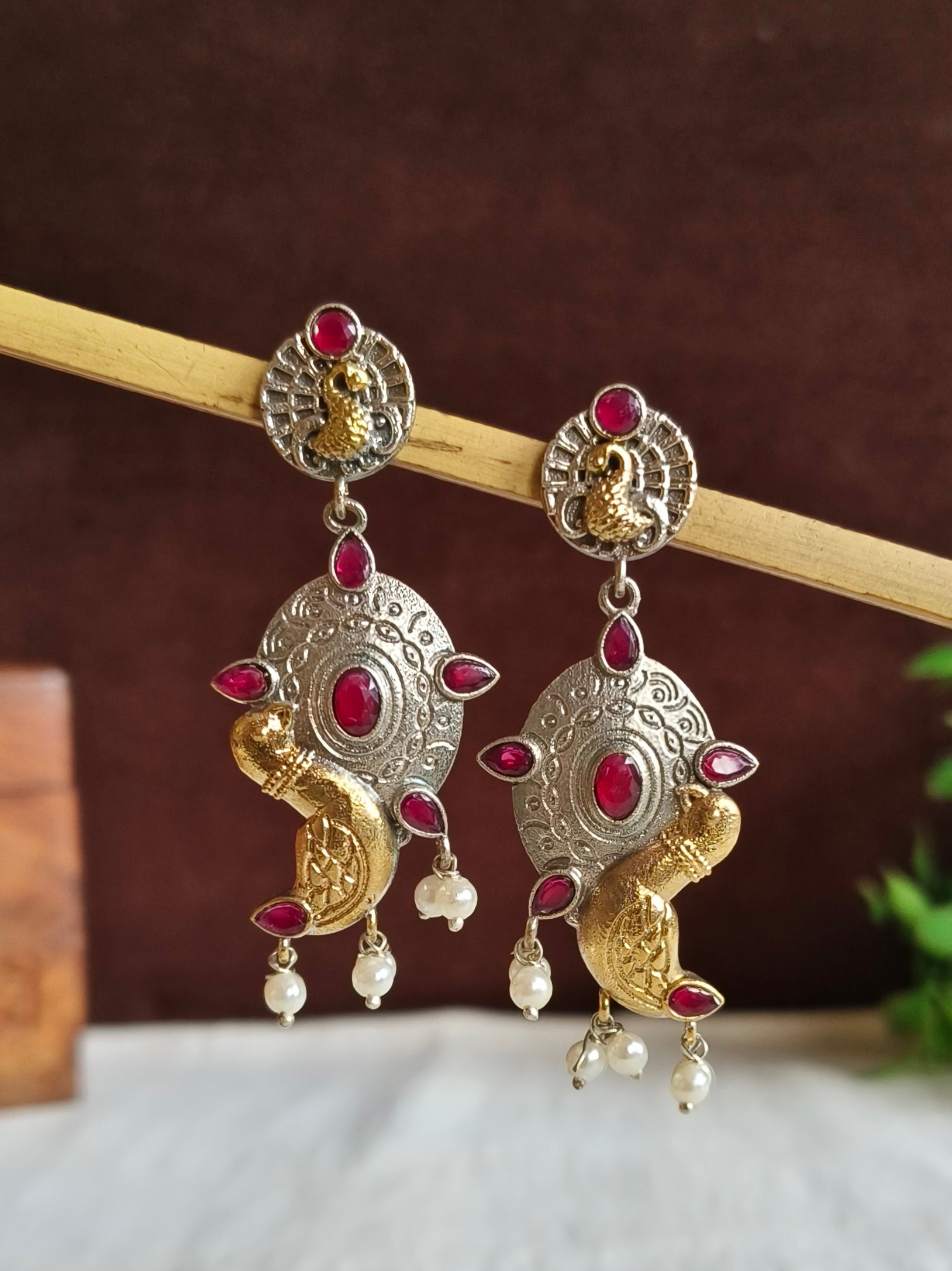 The finely crafted earrings show a high degree of craftsmanship, featuring intricate designs and patterns that capture the essence of traditional art. Combining brass with silver plating provides the durability of these earrings and also a lasting sparkle, and the Pearl gives the perfect touch of class and elegance.