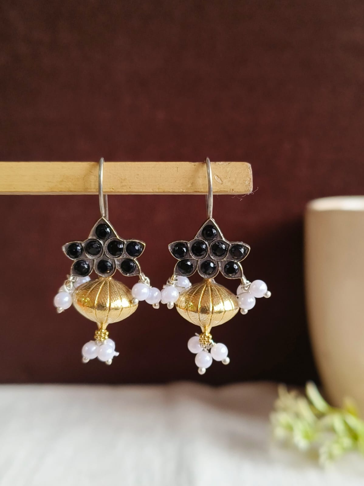The Pearl Golden Hook Earrings has been carefully designed to offer fashion and toughness. The base of brass ensures durability for a long time, and the gold plating gives a sparkling shine that catches the light perfectly. The round-shaped sparrow design is a unique and charming style, which sets them apart from the usual design.