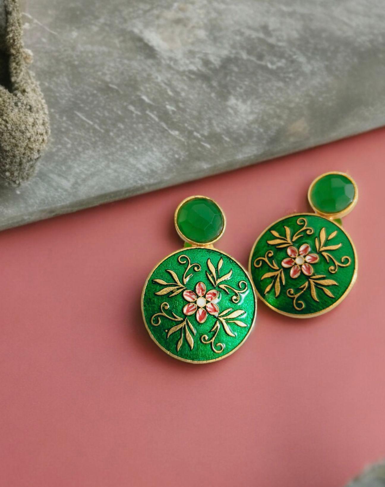 Round Stud Earring With Round Monalisa Stone | Sarichka