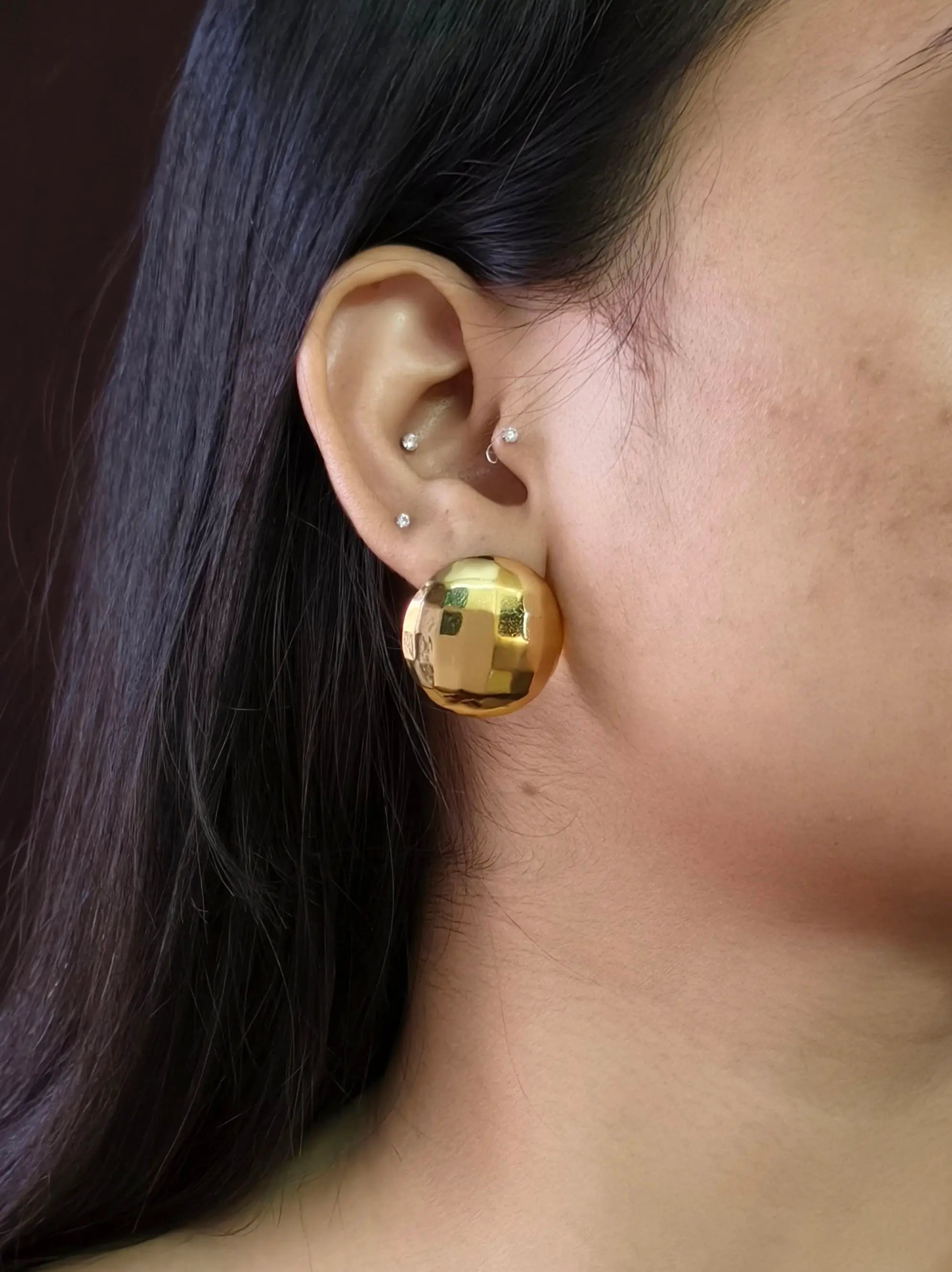 Add a touch of modern sparkle with these Disco Sphere Stud Earrings, crafted from high-quality anti-tarnish stainless steel for long-lasting shine. Featuring a polished metallic sphere with a mirror-like finish, these studs bring a trendy, minimalistic charm to your everyday style. Perfect for daily wear, office looks, parties, and casual outings, their lightweight and durable build ensures all-day comfort. These earrings also make a thoughtful gift option for someone who loves chic and contemporary accessories. Pair them effortlessly with western outfits, fusion wear, or even a simple casual look for instant elegance.