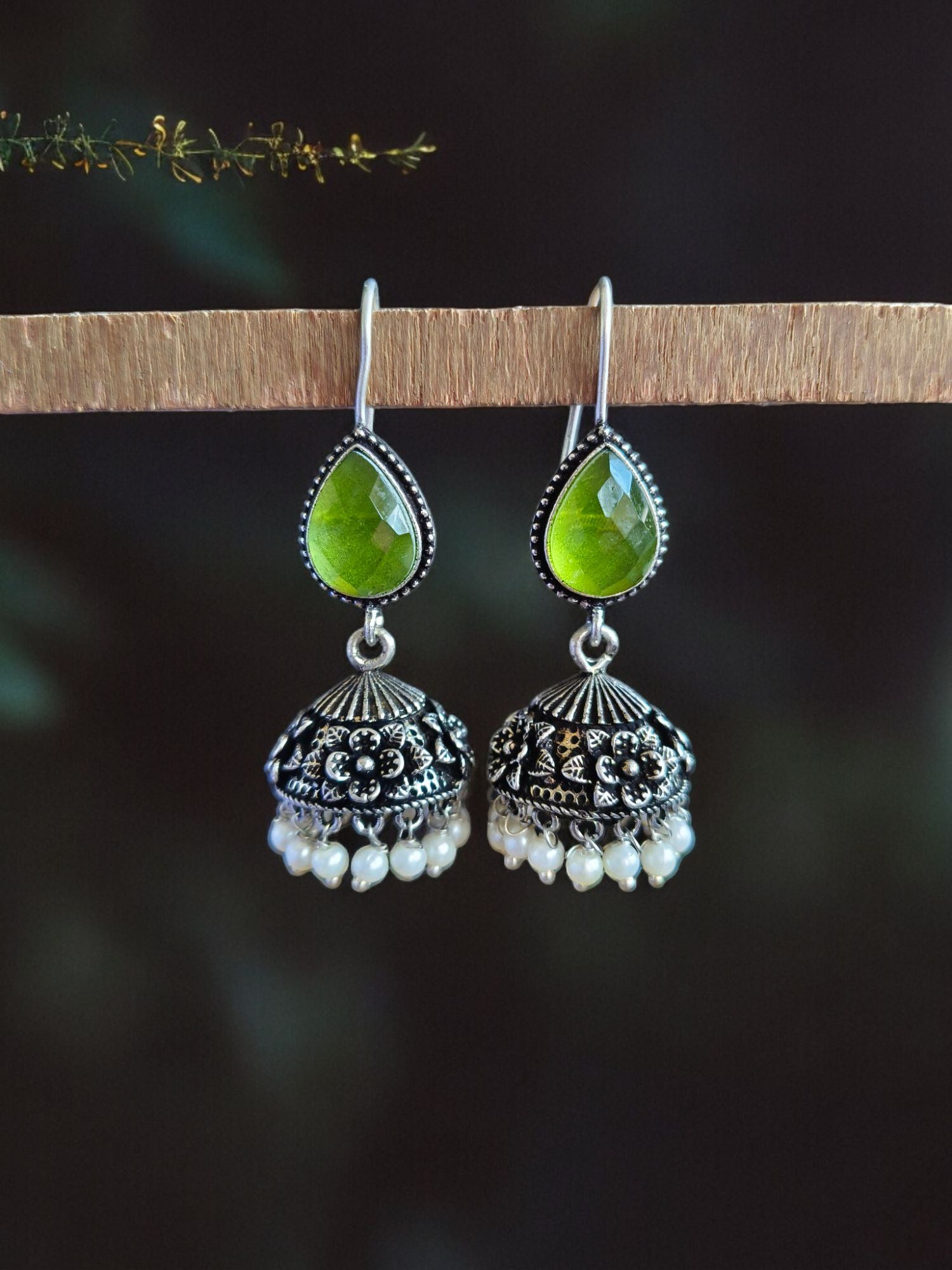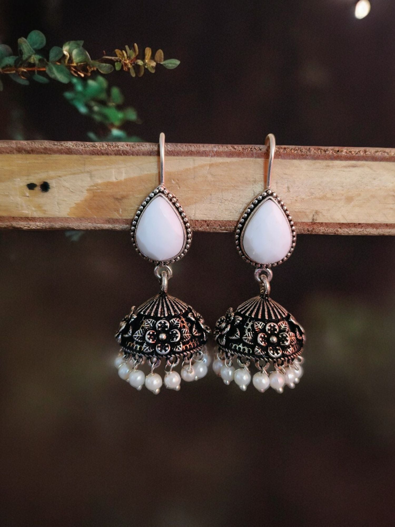 These dazzling Oxidized Hook Earrings have been made to stand out. If you're going to the formal events, a party, or just need to enhance your daily appearance, these earrings make the ideal accessory. The blend of the oxidized silver finish with the elegant pearls provides a stunning visual contrast, which enhances their overall look.