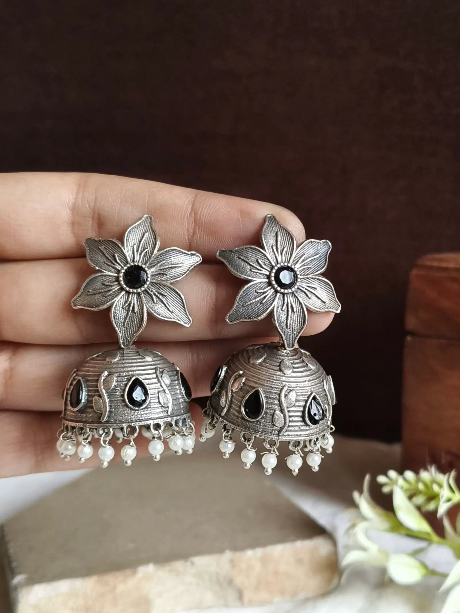 Silver Antique Oxidised Ethnic Jhumka Earring | Sarichka