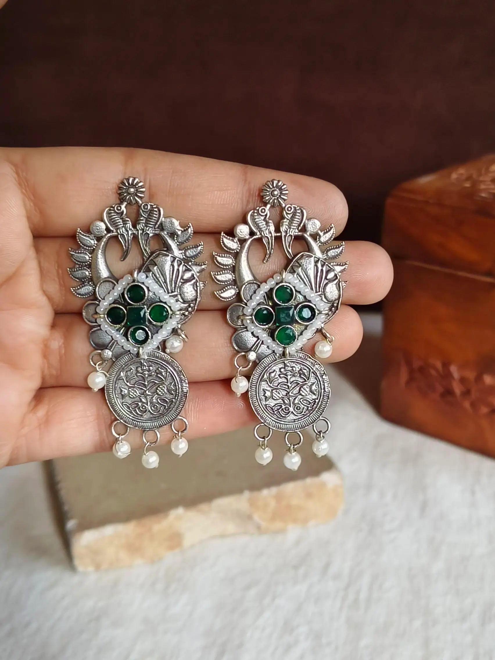 • Finished with delicate pearl drops and engraved coin charms
