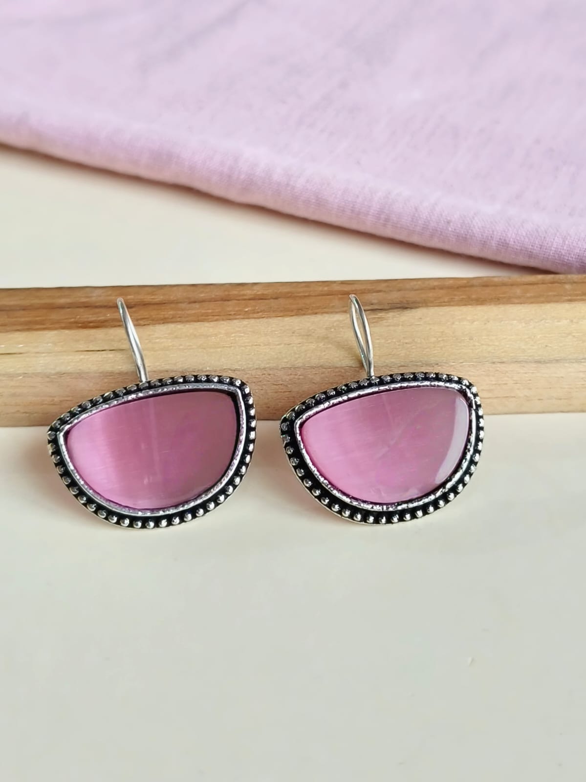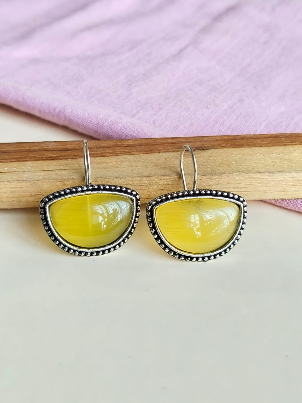 The Monalisa Earrings can be described as an exquisite work of hand-crafted craft and intricate designs. Every earring is adorned with a gorgeous Monalisa stone that is renowned for its stunning elegance and distinctive appeal. It is beautifully placed on an oxidised sterling silver base. This creates an eye-catching contrast that shows its beauty. The polished finish is an added classic touch that enhances overall appearance of the earrings. They have an antique, timeless look.