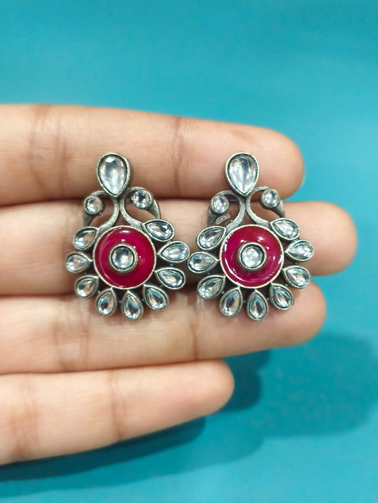 We are presenting our gorgeous Stone Oxidised Studs which are a wonderful mix of class and style. These beautiful earrings were made using premium brass and then coated with silver, which makes them an essential accessory for any jewelry lover. The Animal-like details add a perfect touch of class as the oxidized sterling silver finish provides these earrings with an elegant, timeless look.