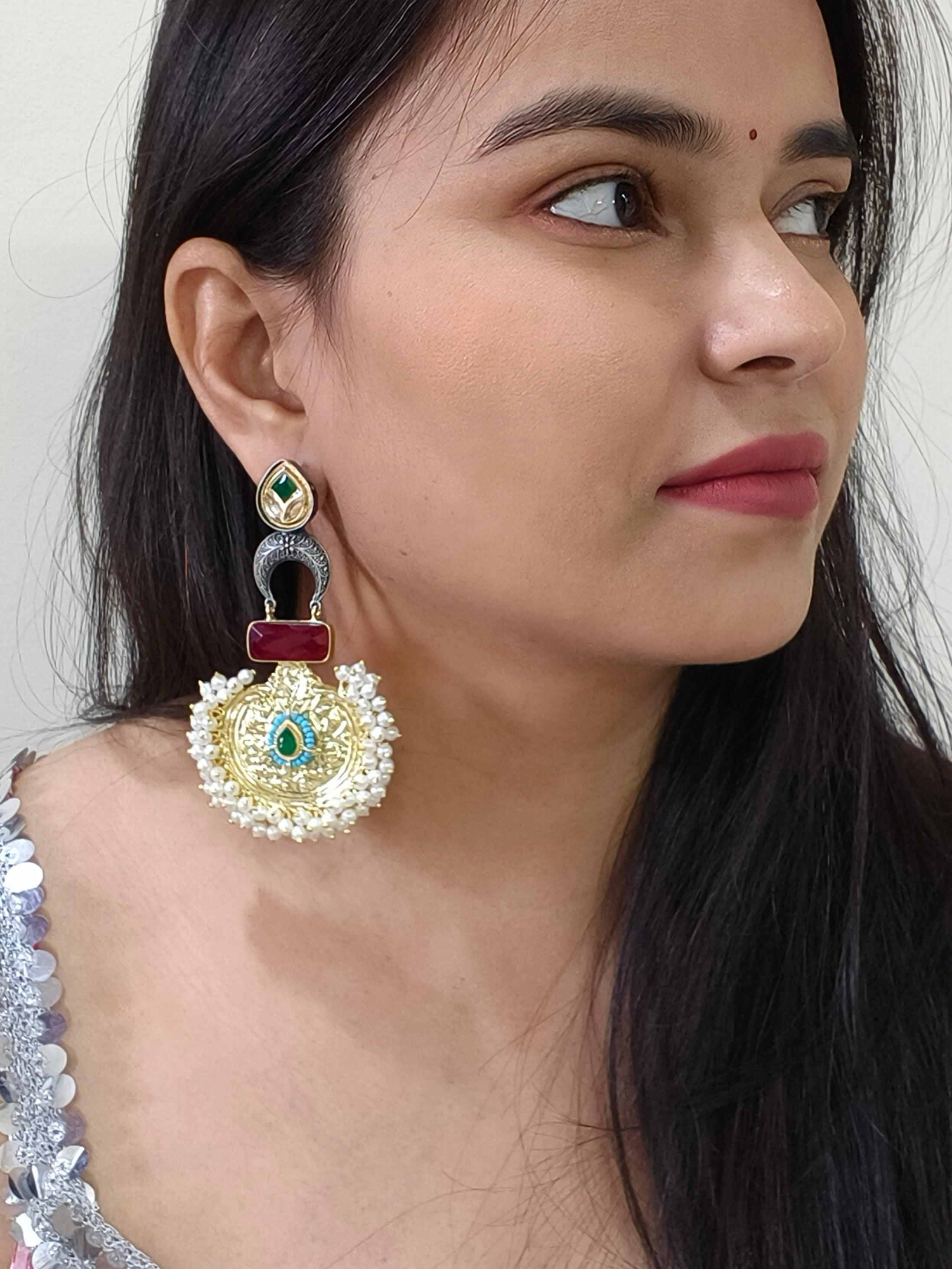 The Oxidized Dangler Earrings can be worn for every event, whether you're attending an event, wedding, or just enhancing your daily style. Their light and comfy design makes them suitable for wear all day, and the pearls give their appearance a refined look that stands apart.