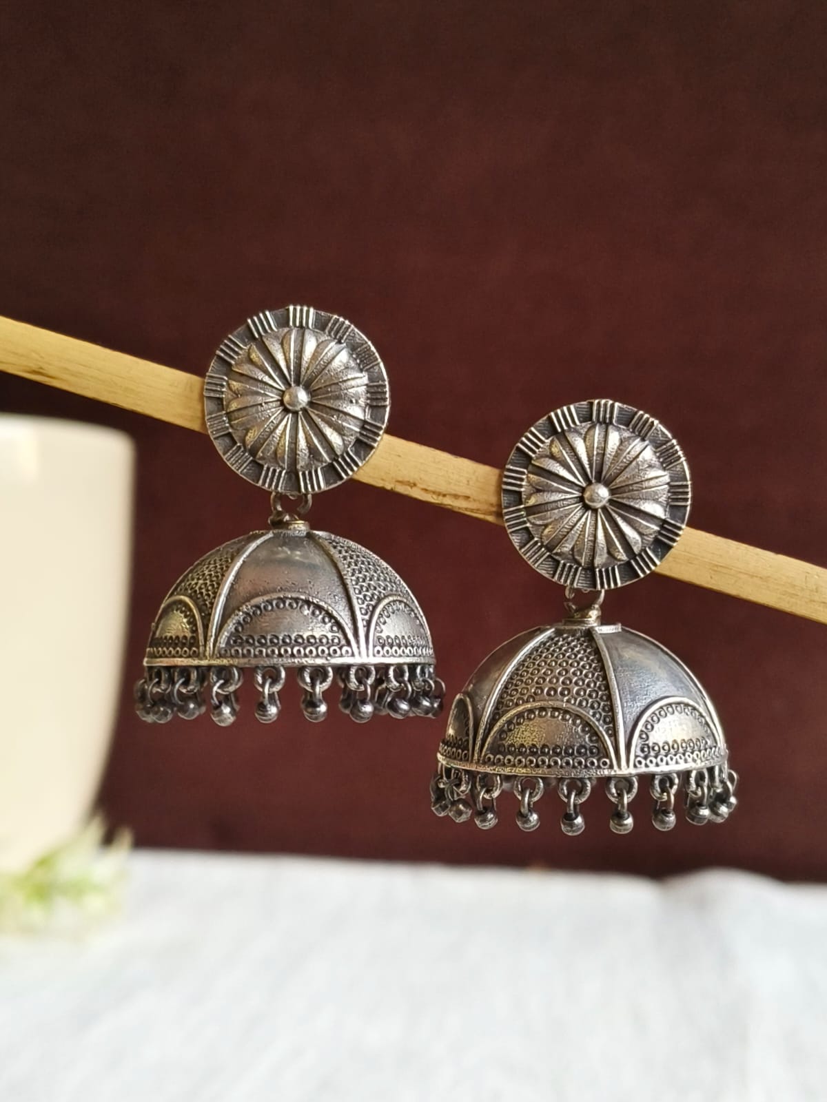 These trendy silver replica jhumka earrings combine elegance and style. The intricate design features a charming jhumka shape with delicate patterns, offering a graceful, traditional look. Crafted with high-quality materials and designed for comfort, these earrings are perfect for daily wear or special occasions like weddings and parties.