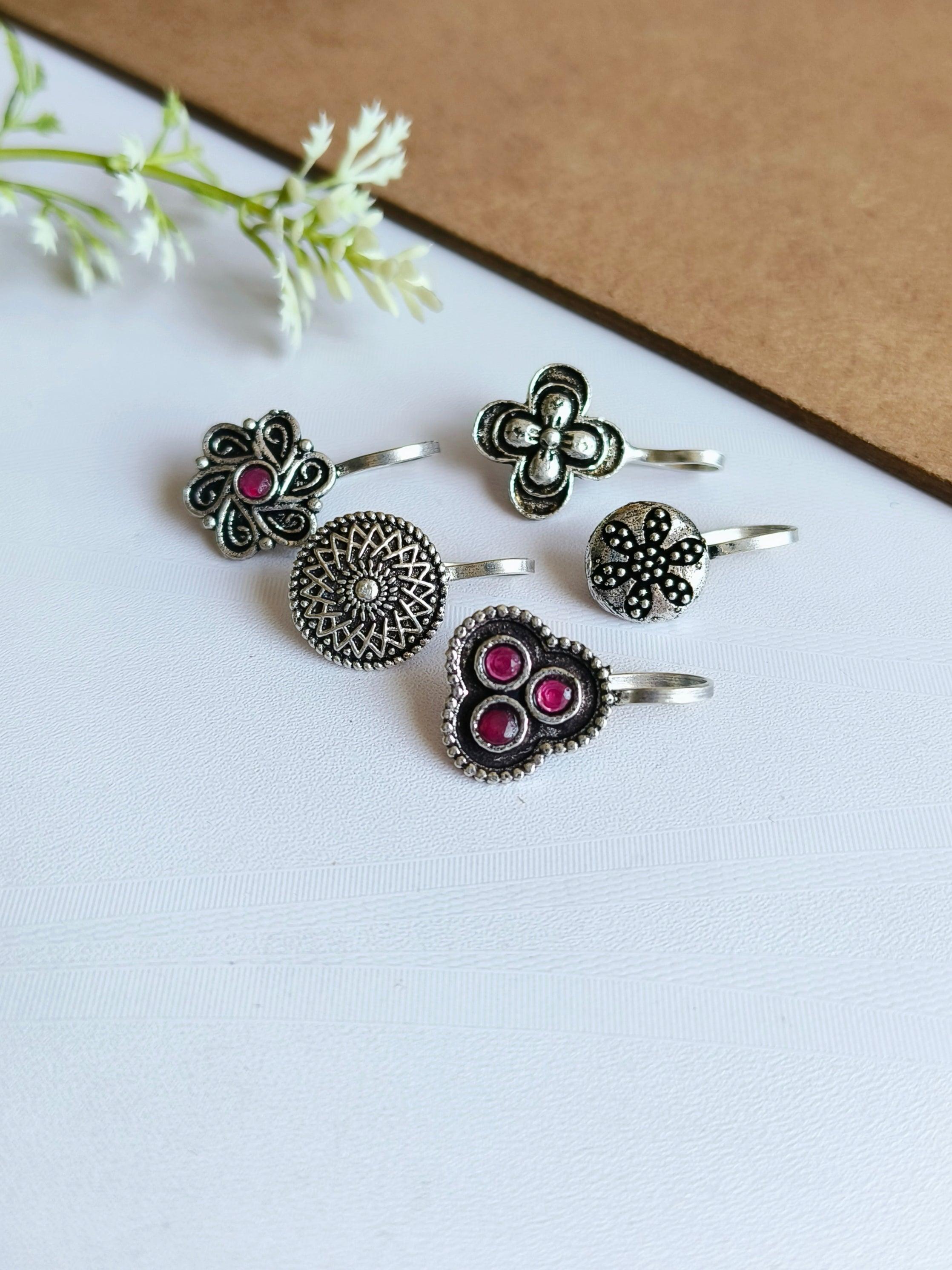 The collection includes a range of Oxidized Nose pins designed to meet the needs of diverse styles and tastes. From delicate floral designs to geometric and minimalist shapes Each design has been meticulously created to complement the beauty of your face and reflect your style. Their versatility can be used for everyday wearing, formal occasions, or as a stand-out item for celebrations.