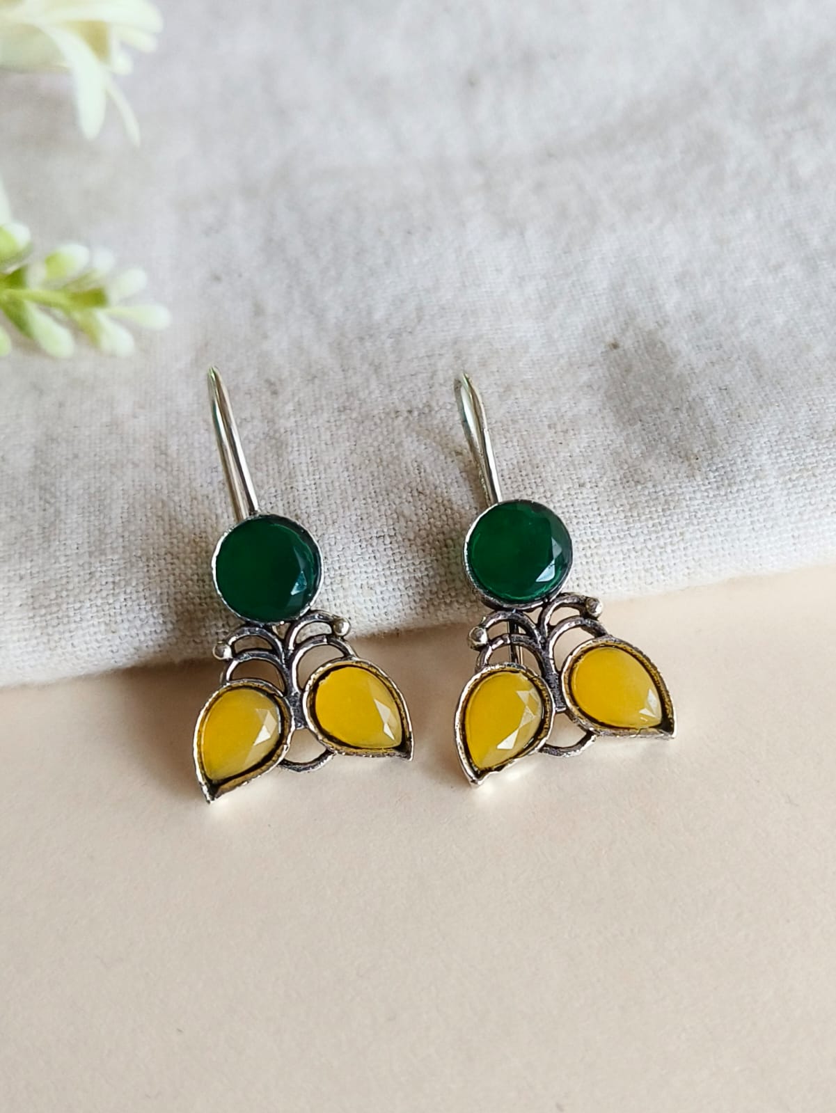Add a splash of color to your daily style with these vibrant multicolor German silver hook earrings, crafted for a chic and effortless look.